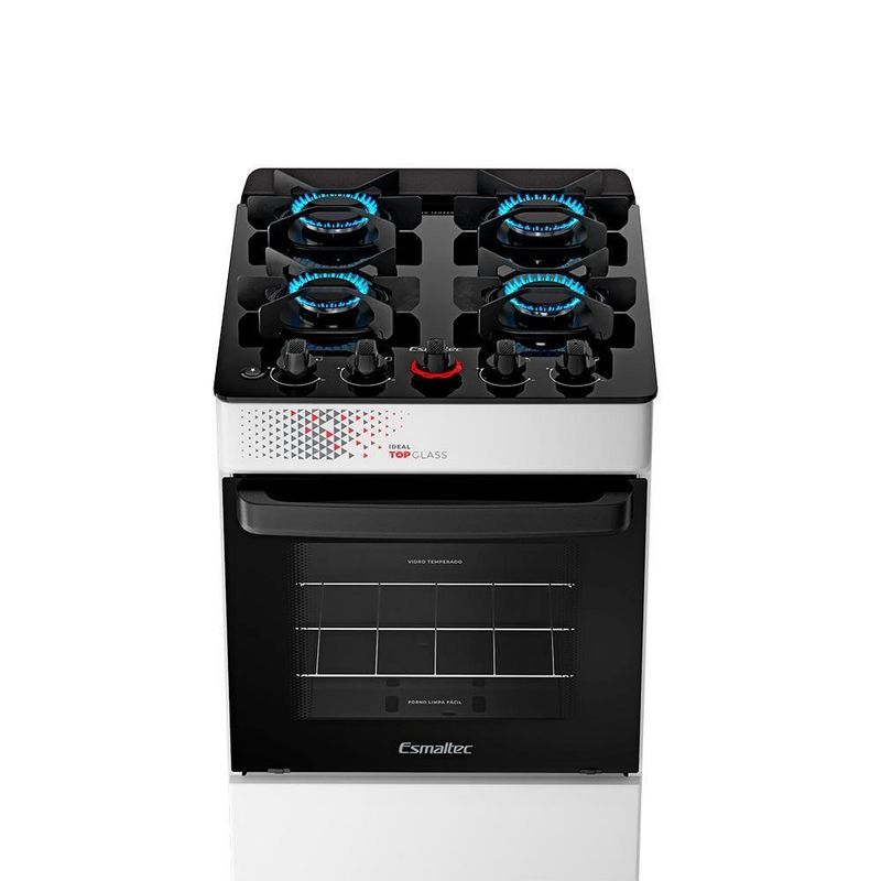 Fogão A Gás Mesa De Vidro Forno 50l Esmaltec Ideal Top Glass Branco 4 Bocas BivoltO que você precisa saber sobre este produtoAcendimento automático: mais agilidade no preparoMesa de vidro temperado: design sofisticado, resistente e fácil de limparTrempes individuais com 6 apoios: mais estabilidade e no preparoForno Limpa Fácil com 50 litros de capacidade: ideal para o preparo do dia a diaPorta do forno em vidro total com vidro interno removível: mais praticidade na limpezaPuxador ergonômico: conforto ao toque e durabilidadePés altos e retos com encaixe fácil: mais estabilidade e DescriçãoO Fogão 4 Bocas Esmaltec Ideal Top Glass a Gás com Mesa de Vidro Branco oferece o equilíbrio ideal entre design moderno, funcionalidade e resistência. Sua mesa de vidro temperado, além de elegante, é fácil de limpar e dá um toque sofisticado à cozinha.Com acendimento automático, o uso no dia a dia fica mais prático. As trempes individuais com 6 apoios oferecem mais estabilidade para diferentes tamanhos de panela, garantindo mais durante o preparo das refeições.O forno com 50 litros de capacidade, com porta em vidro total, vidro interno removível e prateleira ajustável, oferece versatilidade e praticidade para o preparo e a limpeza.O modelo ainda conta com puxador ergonômico e pés altos e retos com encaixe fácil, proporcionando conforto, firmeza e mais funcionalidade na rotina da cozinha.O Esmaltec Ideal Top Glass 4 bocas branco a gás é a escolha ideal para quem busca beleza, praticidade e um ótimo desempenho.Isso é valor. Isso é Esmaltec.Voltagem: Bivolt | Quantidade de queimadores: 4 | Forno: Limpa Fácil | Cor: Branco
