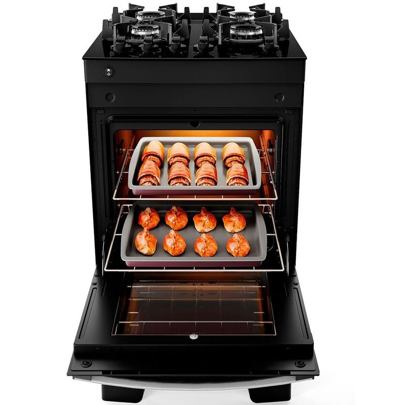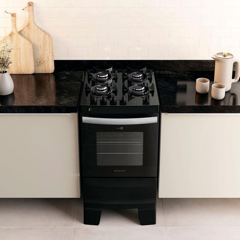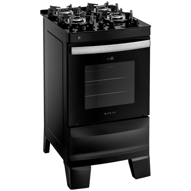 A mesa de vidro ultra resistente e o puxador em alumínio escovado, dão um toque de elegância à sua cozinha. Os pés altos e robustos proporcionam estabilidade e segurança durante o uso e facilitam a limpeza. E o visor amplo do forno oferece uma visão clara dos seus pratos em preparo.As grades de ferro fundido são um destaque no Agile Up Glass, combinando estilo e resistência. Além de proporcionarem um visual único, essas grades foram projetadas para suportar panelas de diferentes tamanhos, garantindo estabilidade.A potência é uma característica essencial em qualquer fogão. O Agile Glass vai além ao oferecer queimadores forjados, que garantem um desempenho superior e uma distribuição de calor uniforme. Para maior praticidade, o fogão possui 2 prateleiras deslizantes, permitindo que você ajuste facilmente a posição dos alimentos dentro do forno.Com a lâmpada do forno, você poderá visualizar seus pratos com clareza e verificar seu cozimento sem precisar abrir a porta do forno, economizando energia e mantendo a temperatura interna estável.O Fogão Agile UP Glass é perfeito para famílias que querem uma cozinha renovada e bonita para receber pessoas queridas. Um produto prático, moderno e durável, que combina com seu dia a dia e estilo. Tudo isso, com o selo de mais de 70 anos de qualidade Atlas.