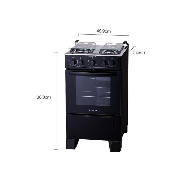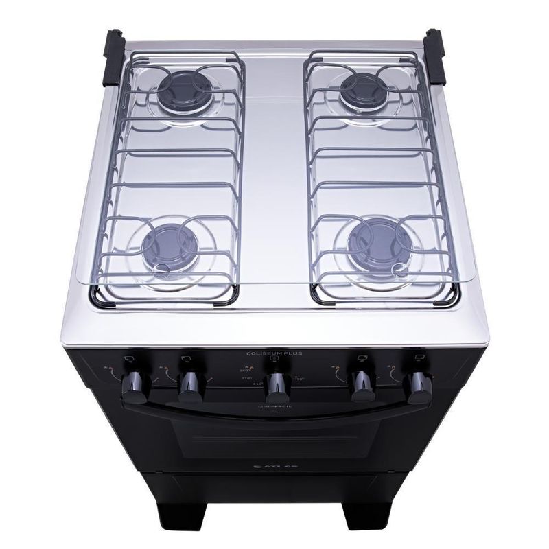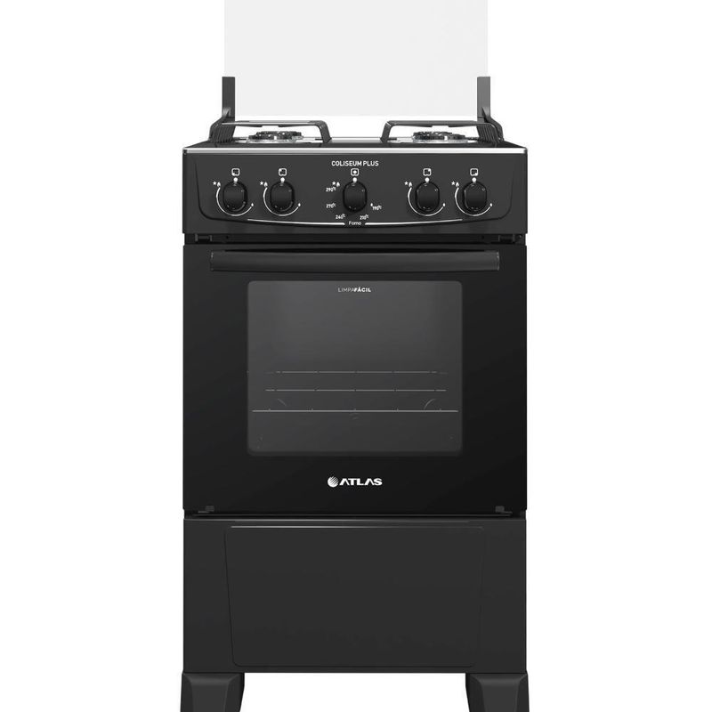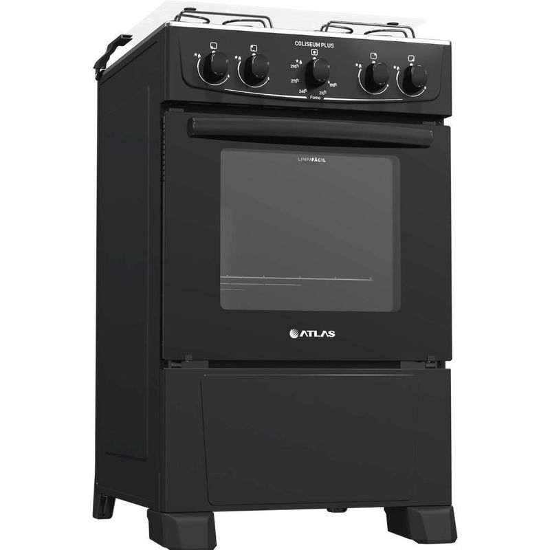 Fogão Atlas 4 Bocas Preto Com Forno Limpa Fácil Coliseum Plus - Forno 50l *Não vendemos para CNPJ neste canal de vendas. Compras realizadas com CNPJ serão automaticamente canceladas.Seu design com mesa de inox em nova estrutura e botões removíveis simplificam na hora da limpeza. Além disso, o fogão conta com puxador tubular metálico, que permite mais estabilidade para a abertura da porta do forno, painel moderno que permite controlar melhor a temperatura das bocas e do forno, pés altos e robustos, trempes duplas em aço esmaltado e acendimento manual.A versão possui 2 queimadores de 1,7kW e 2 queimadores Família de 2,0kW.O forno possui excelente capacidade de 50 litros, vidro total na porta do forno, visor amplo, que permite ver tudo o que está dentro e 1 grade deslizante.Ficha Técnica:Cor: PretoLinha: ColiseumQuantidade de Bocas: 4 bocasTipo de Acendimento: ManualGarantia: 12 MesesAcabamento da Mesa: InoxInstalação: Fogão de PisoTurbo Convecção: NãoDimensões do Produto (largura x altura x profundidade) 48,9 x 88,3 x 57,3 cmDimensões Internas do Forno (largura x altura x profundidade) 37 x 30 x 45 cmGrill: NãoFuncionamento: GásCapacidade do Forno: 50 LitrosAcabamento do Forno: Limpa FácilLuz no Forno: NãoVidro do Forno: Vidro DuploTampa: SimTrempes: Trempe dupla em aço esmaltadoGrades do Forno: 1 Grade deslizanteTimer Digital: NãoBotões Removíveis: SimFabricação: NacionalPotência dos Queimadores: 2Q Ramal de 1,7kW e 2Q Família de 2,0kWSistema Corta/Bloqueia Gás: NãoEficiência Energética: AINFORMAÇÕES ADICIONAIS- Todos os produtos são enviados via transportadoras parceiras.- Não temos acesso a prazos e antecipação de entregas, pois é de responsabilidade do próprio transportador.- Garantia: 12 meses contra defeito de fabricação.- Após a compra a mercadoria será faturada de 2 a 5 dias úteis.Cor: Preto | Marca: Atlas Eletrodomésticos | Modelo: Coliseum Plus | Capacidade do forno: 50L | Tipo de acendimento: Manual | Fabricação: Manual | Acabamento do forno: Limpa fácil | Trempe: dupla de aço esmaltado | Tipo da mesa: aço inox | Grade do forno: 1 grade deslizante com 2 regulagens de altura | Dimensões do produto: larg x alt x prof (em cm) 48 x 88,3 x 57,3 | Tipo de Montagem: Piso | RBN: 16745448011 | Tomada: 10A