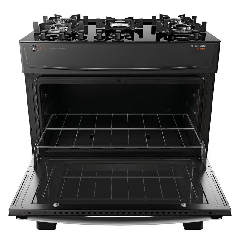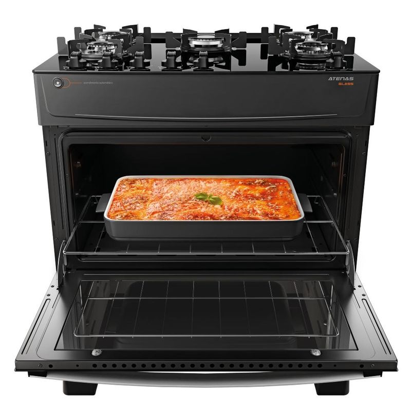 Fogão 5 Bocas Preto com Mesa de Vidro Atlas Atenas Glass: o Ingrediente que Faltava para Suas Receitas!O lançamento Atlas Atenas Glass possui excelente acabamento, mesa de vidro temperado sem bordas, acendimento automático, grades individuais de aço esmaltado com 6 pontos de apoio, que dão mais estabilidade para suas panelas, puxador amplo, botões removíveis e pés altos e robustos, que facilitam na hora da limpeza.A versão 5 bocas possui 2 queimadores de 1,7kW, 2 queimadores de 2,0kW e 1 queimador Mega Chama de 3,0kW.O forno possui capacidade de 86,5 litros com dimensões de 64 x 30 x 45 cm (largura x altura x profundidade), acabamento limpa fácil, 1 grade deslizante e porta com vidro duplo - que preserva o calor. Atributos e BenefíciosCom isolamento térmico (lã de basalto), que deixa o produto MUITO mais econômico.Com puxador de alumínio escovado - Mais bonito, moderno e melhor acabadoCom controle dos botões na mesa para uma maior praticidadeGrades individuais de aço com acabamento Limpa Fácil - com 6 pontos de apoio proporciona maior estabilidade às panelasPés altos e robustos para facilitar a limpezaVisor do forno mais amplo e com a porta toda em vidroAcendimento Automático - maior praticidade e facilidade de usoForno Limpa Fácil - Muito fácil limpar o fornoVersão 5 queimadores com 86,5LFicha Técnica:Marca: AtlasVoltagem: BivoltPadrão de Tomada: 10ACor: PretoLinha: AtenasQuantidade de Bocas: 5 bocasTipo de Acendimento: AutomáticoGarantia: 12 MesesAcabamento da Mesa: Vidro TemperadoInstalação: Fogão de PisoTurbo Convecção: NãoDimensões do Produto (largura x altura x profundidade): 75 x 88 x 59,50 cmComprimento do Cabo de Energia: 96 cmGrill: NãoFuncionamento: GásCapacidade do Forno: 86,5 LitrosAcabamento do Forno: Limpa FácilLuz no Forno: NãoVidro do Forno: Vidro DuploTampa: NãoTrempes: Individual de aço esmaltado com 6 pontos de apoioGrades do Forno: 1 Grade deslizanteTimer Digital: NãoBotões Removíveis: SimFabricação: NacionalPotência dos Queimadores: 2Q Ramal de 1,7kW, 2Q Ramal de 2,0kW e 1Q Megachama de 3,0kWSistema Corta/Bloqueia Gás: NãoEficiência Energética: AEAN: 7897180513320SKU: 300002139DÚVIDAS FREQUENTESEste Fogão é para uso com Botijão de Gás?R: Este modelo sai de fábrica para funcionar com gás de botijão, o GLP.É possível realizar a conversão de botijão para Gás Natural (GN)/gás de rua?R: Sim, todos os nossos fogões podem ser convertidos para trabalhar com gás natural, o GN, ou gás de rua. A conversão é gratuita e deve ser solicitada após a entrega do fogão. O prazo após solicitação é de 48h para agendamento da conversão. Lembrando que você tem 90 dias para solicitar a conversão após a chegada do produto.Qual é o lado da mangueira do fogão?R: A saída é do lado esquerdo olhando o fogão de frente. Caso você queira colocar para o outro lado, deverá acoplar uma mangueira metálica e utilizar na transversal para evitar corrosão.