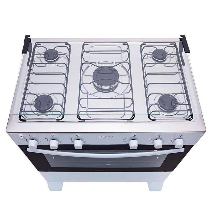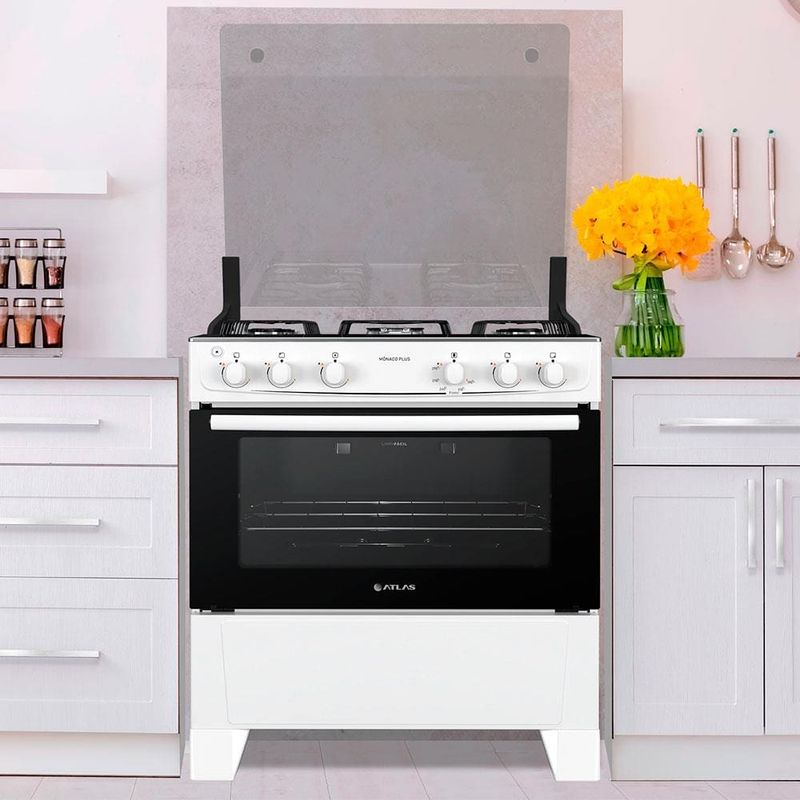 Leve o Fogão Atlas 5 Bocas Mônaco Plus para sua cozinha e ganhe mais agilidade na sua rotina.O Fogão Atlas 5 Bocas Mônaco Plus, com 5 bocas é aquele produto especial que ajudará você a preparar as melhores receitas.Com mesa de Inox em um novo formato, ajuda a reter líquidos derramados. Possui acendimento automático, trempes em nova trama, que são bem mais robustos e se adere melhor a base das panelas. Além disso, seu forno tem capacidade para 86,5 litros.