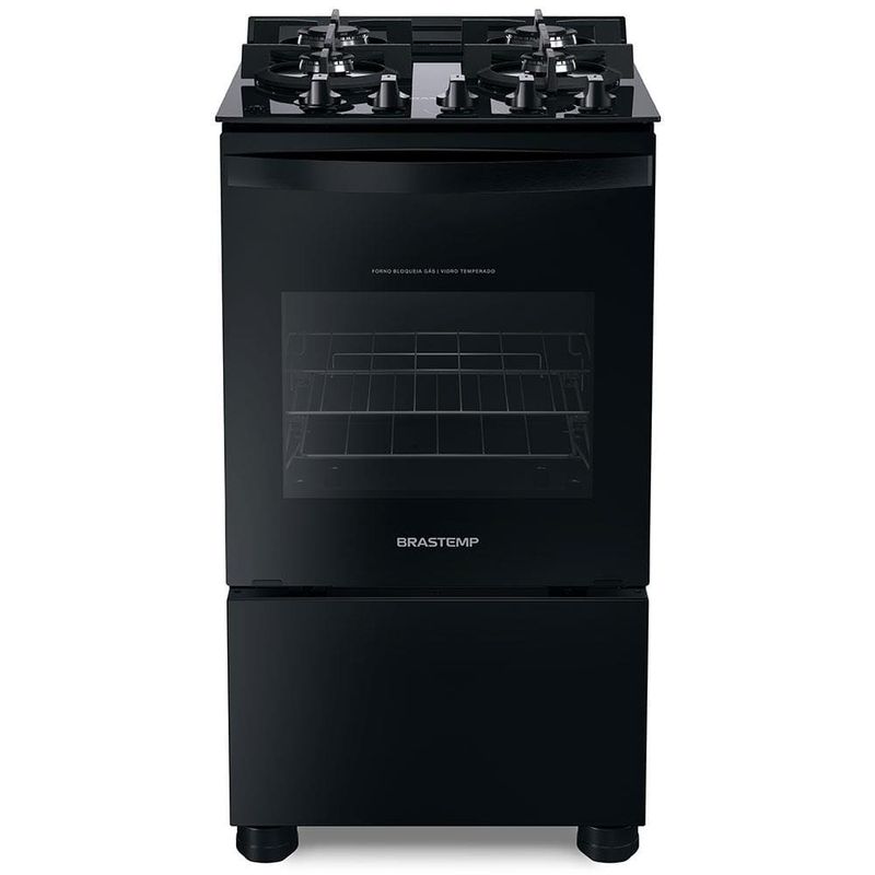 Elegância, sofisticação e funcionalidade para sua cozinha é com o Fogão Brastemp 4 Bocas BFO4VAE.O modelo conta com mesa de vidro temperado preta e grades duplas de ferro fundido que garantem robustez e segurança para os seus preparos. O forno de 61 litros conta com vidro com visão ampla para um melhor acompanhamento do prato durante o preparo, além disso, traz puxador preto em alumínio escovado. Conta, ainda, com 2 prateleiras, sendo 1 autodeslizante que facilita a retirada dos alimentos. O Fogão Brastemp conta também com botões removíveis e acendimento automático. Tudo isso num design em tom preto que deixará o ambiente ainda mais bonito e elegante.