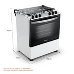 Fogão Brastemp Piso 5 Bocas Branco com Botões Removíveis e Aro Protetor Bivolt - Praticidade no Dia a Dia com Design Funcional e Limpeza FacilitadaO Fogão Brastemp Piso 5 Bocas BFS5NDB foi desenvolvido para quem busca desempenho, organização e facilidade na rotina da cozinha. Seu acabamento em inox com cor branca traz um visual moderno e combina com diferentes estilos de ambiente, enquanto a mesa lisa ajuda na limpeza após o uso.Os 5 queimadores, sendo 3 rápidos e 2 semi-rápidos, garantem flexibilidade para preparar várias receitas ao mesmo tempo, desde refeições rápidas até preparos maiores. O acendimento automático oferece praticidade no momento de cozinhar, sem necessidade de fósforos ou ignição manual.O forno com 96 litros oferece espaço interno amplo e conta com visor panorâmico, facilitando o acompanhamento do preparo sem abrir a porta. A luz interna também auxilia na visualização, tornando o uso mais intuitivo. Para simplificar a manutenção, o modelo possui botões removíveis, permitindo limpeza mais completa no dia a dia.Especificações técnicasMarca: BrastempModelo: BFS5NDBCor: BrancoTipo: PisoQuantidade de queimadores: 5 QueimadoresTipo de gás: GLPVoltagem: Bivolt Acendimento: Automático Timer: Não Volume do forno: 96 litrosClassificação energética: A Potência dos queimadores: 3 queimadores rápidos e 2 semi-rápidoTipo de acendimento: automático Tipo de timer: NãoTermostato no forno: Não Luz no forno: SimFunção grill: Não Botões removíveis para limpeza: Sim Trava de segurança: Não Material da mesa: InoxPés niveladores: Não Tipo de grades: Dupla de arame Porta do forno com visor panorâmico: Sim Dimensões do Produto Embalado: 81,4 L x 100 A x 77,7 P cm (p/ fogão de piso)Peso Bruto: 44kg Dimensões: 77,8 L x 97,6 A x 68,1 P cm Peso: 39kg Garantia: 12 meses