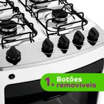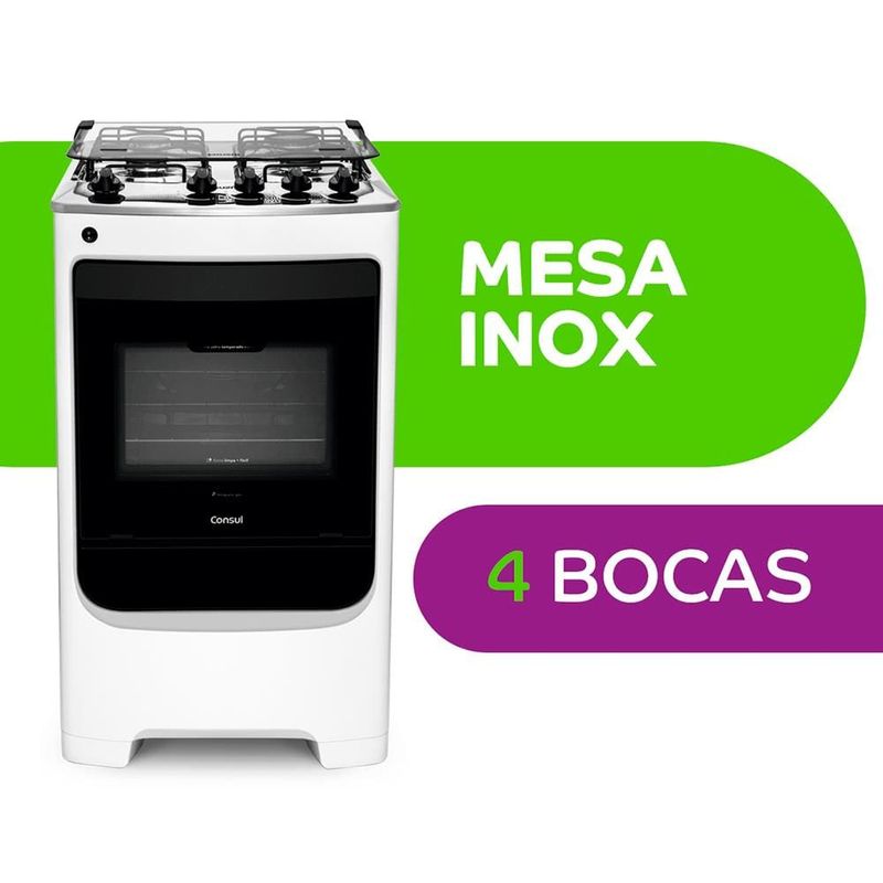O Fogão Consul 4 Bocas CFO4NAB - Branco foi desenvolvido para facilitar sua vida, desde o preparo dos pratos até a hora da limpeza.Seu design moderno em frente única e sem recortes facilita a limpeza do fogão, pois não há espaços pequenos nos quais a sujeira possa se acumular, com manípulos removíveis, acendimento automático e forno limpa fácil com 58 litros de capacidade e Tecnologia Cleartec um revestimento totalmente liso e esmaltado, evitando absorção de gordura. Possui prateleira deslizante ajustável em 3 alturas, o que facilita o uso e fornece diversas opções de preparo.