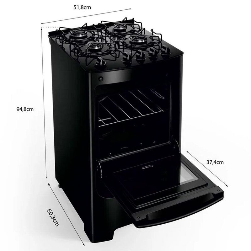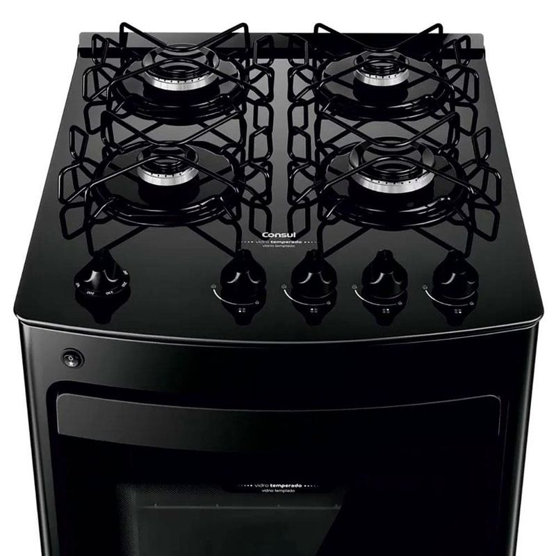 O Fogão Consul 4 Bocas CFO4VBE é tudo o que você precisa para ganhar eficiência e praticidade na sua cozinha!Com um lindo e moderno design, o Fogão Consul CFO4VBE possui 4 bocas e conta com grades individuais super estáveis, trazendo mais estabilidade para as panelas. Conta ainda com queimadores rápidos que proporcionam velocidade para os preparos do dia a dia, além de muita segurança.E por falar em segurança, esse incrível modelo traz quinas não cortantes, válvula contra vazamento de gás e pés traseiros ajustáveis para que você possa cozinhar tranquilamente e sem preocupação.Já o forno conta com amplo espaço, com uma capacidade de 58L, luz no forno que possibilita acompanhar seus preparos a qualquer momento, além de uma prateleira ajustável em 3 alturas e travas de segurança.E para a limpeza não tem estresse, pois sua mesa é de vidro temperado e o forno possui paredes esmaltadas que facilitam a limpeza. Por isso, não perca mais tempo e adquira agora mesmo o seu Fogão 4 Bocas CFO4VBE da Consul!