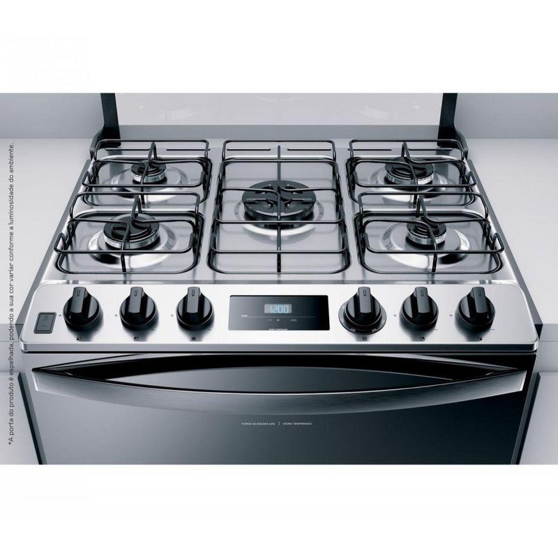 Fogão de Embutir Inox 5 Queim. Brastemp Bivolt BYS5PCRUNA Fogão Brastemp de embutir com Touch Timer e maior precisão no tempo de preparo permite atingir o ponto certo de cada receita. Turbo Chama Garante potência e velocidade nos preparos. Sua cozinha muito mais bonita e prática. Especificações Técnicas: - Tipo: Embutir - Tamanho: 5 bocas - Acendimento: Gás - Dimensões (L x A x P) cm: 77,8 x 77,8 x 68,1 - Dim. nicho embutir (L x A x P) cm: 78 x 70,3 x 56,2 - Cor: Inox - Peso (kg): 37 - Bivolt - Acendimento: Automático - Timer: Digital - Tampa: Sim - Diferenciais: Botão removível - Luz de forno: Sim - Grill: Não - Trava de segurança:Não - Pés: Não - Termostato: Não - Bandeja coletora de resíduos: Não Garantia: 12 meses Marca: Brastemp