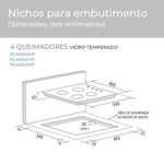 Fogão De Mesa Cooktop 4 Bocas Vidro Preto à Gás Fg4004avp BivoltDescriçãoVANTAGENS DO PRODUTO Acendimento superautomático: Maior praticidade no preparo das refeições. Trempes de aço esmaltado: Mais resistência e durabilidade. Mesa em vidro temperado: Qualidade e alta resistência. Botões multicontrol removíveis: Facilita ainda mais a limpeza no dia a dia. 4 queimadores a gás Potência térmica: 7,05Kw Ver mais detalhes MEDIDAS DO PRODUTO ProdutoCom embalagemPara embutir Altura 9,9 Largura 55,0 Profundidade 46,0 Peso 6,66 ESPECIFICAÇÕES TÉCNICAS Nome do produto: Cooktop vidro 4 queimadores Cor: Preto Modelo Bivolt: FG4004AVP Código EAN: 790.831.280.753-5 Qtd. pçs. caixa: 1Sobre o produtoO COOKTOP VIDRO 4 BOCAS SUGGAR oferece um toque de beleza e sofisticação para a sua cozinha. Sua mesa de vidro temperado, além de dar um toque de charme na cozinha, garante qualidade e alta resistência. Com acendimento automático total na mesa e no forno, oferece praticidade incomparável na hora de cozinhar. São 4 queimadores de diferentes tamanhos com acendimento automático e botões multifuncionais removíveis que facilitam a limpeza. Marca: Suggar | Garantia: 12 Meses | Cor: Preto | Quantidade de queimadores: 4 | Principais Características do Produto 1: | Dimensões do item P x L x A: | Componentes incluídos: | Palavras-chave de Pesquisa: | Tipo de combustível: | Baterias são necessárias?: | Principais Características do Produto 0: | Principais Características do Produto 2: | O item é autorizado pelo OEM?: | Fabricante: | Elemento de aquecimento: | Certificação de teste externa: | Número da peça: | Fonte de energia: | Peso do pacote no site: | Descrição da garantia: | Número do modelo: | Voltagem: Bivolt