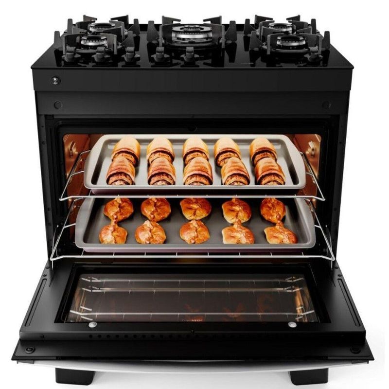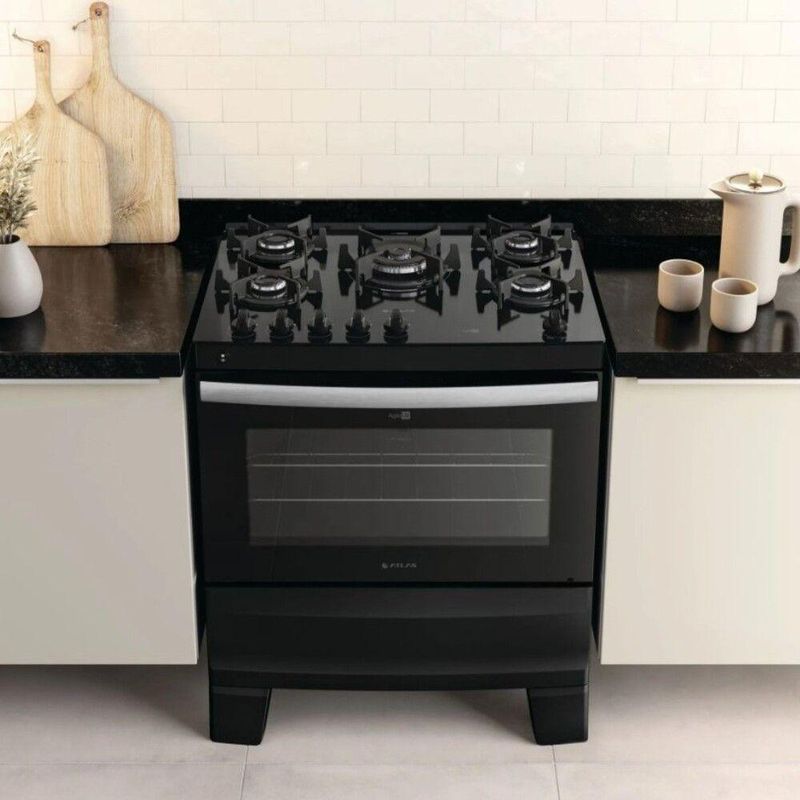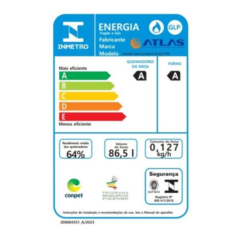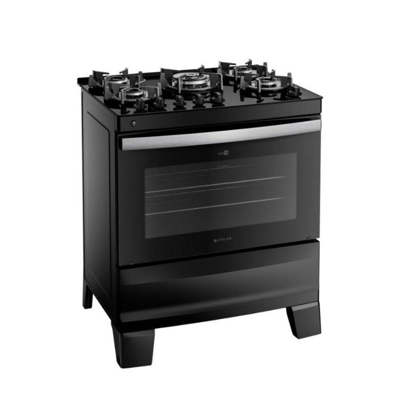 Fogão De Piso 5 Bocas Agile Up Glass Com Mesa De Vidro 300001665 Atlas Preto BivoltApresentamos o Fogao de Piso 5 Bocas Agile Up Glass com Mesa de Vidro 300001665 da Atlas. Com mesa de vidro ultra resistente e o puxador em aluminio escovado, dao um toque de elcia a sua cozinha. Os pes altos e robustos proporcionam estabilidade e seguranca durante o uso e facilitam a limpeza. Seu visor amplo do forno oferece uma visao clara dos seus pratos em preparo. As grades de ferro fundido sao um destaque no Agile Up Glass, combinando estilo e resistencia. Alem de proporcionarem um visual unico, essas grades foram projetadas para suportar panelas de ntes tamanhos, garantindo estabilidade.Conta com 2 queimadores semirrapido de 1,67kW, 2 queimadores rapido de 2,0kW, 1 queimador Tripla Chama de 3,3kW e forno com capacidade de 86,5 litros. Para maior pde, o fogao de inox possui 2 prateleiras deslizantes, permitindo que voce ajuste facilmente a posicao dos alimentos dentro do forno. Com a lampada do forno, voce podera visualizar seus pratos com clareza e verificar seu cozimento sem precisar abrir a porta do forno, economizando energia e mantendo a temperatura interna estavel. O Fogao Agile UP Glass e perfeito para familias que querem uma cozinha renovada e bonita para receber pessoas queridas. Um produto pratico, moderno e , que combina com seu dia a dia e estilo. Especificacoes tecnicas: Marca: Atlas Linha: Agile Up Glass Referencia do Produto: 300001665 Quantidade de Bocas: 05 Tipo de Acendimento: Automatico Acabamento da Mesa: Vidro Temperado Instalacao: Fogao de Piso Potencia dos Queimadores: 2Q Semirrapido de 1,67kW, 2Q Rapido de 2,0kW e 1Q Tripla Chama de 3,3kW Funcionamento: Gas Voltagem: Bivolt Padrao de Tomada: 10A Capacidade do Forno: 86,5 Litros Acabamento do Forno: Limpa Facil Luz no Forno: Sim (lampada de 220v acompanha o produto) Vidro do Forno: Vidro Duplo Trempes: Individual de ferro fundido com 6 pontos de apoio Grades do Forno: 2 Grades deslizantes Sistema Corta/Bloqueia Gas: Sim Botoes Removiveis: Sim Comprimento do Cabo de Energia: 96cm Eficiencia Energetica: A Dimensoes do Produto: Altura: 92,87 cm Largura: 75,66 cm Profundidade: 59,2 cm Peso: 36 Kg Garantia de 12 meses pelo Fabricante (Contra defeitos de Fabricacao). Informacoes Importantes: A do seu produto esta condicionada a disponibilidade deste servico a CEPs selecionados, definidos pela loja atraves da analise do CEP informado no momento da compra. O valor e/ou a gratuidade deste servico serao informados no campo: Calcular e Prazo com o preenchimento do CEP do local de . Na limpeza nao utilizar produtos quimicos e abrasivos, usar apenas com pano umedecido ou lavagem a seco (recomenda-se um ), para garantir a maior durabilidade do movel. Os objetos que ambientam as fotos nao acompanham o produto. Imagens meramente ilustrativas. Cores e tonalidades podem variar. Ao receber a mercadoria, o cliente deve verificar as condicoes da embalagem, caso haja alguma avaria nao assine comprovante de recebimento. A desmontagem e outras instalacoes serao de responsabilidade do cliente. Nao nos responsabilizamos, no ato da , por subir escadas/elevadores ou pelo transporte por guincho em apartamentos. Eventuais despesas sao de responsabilidade do comprador. Confira as dimensoes do produto e certifique-se de que passara normalmente por supostos elevadores, portas, escadas e/ou corredores de sua residencia.