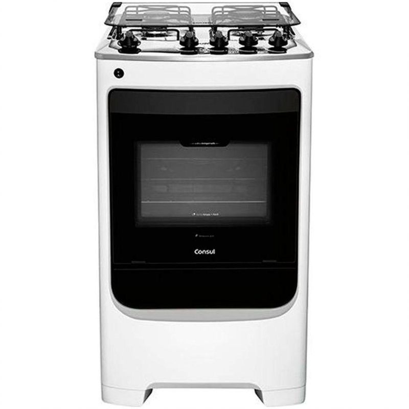Fogão De Piso Consul Facilita 4 Bocas Acendimento Automático Cfo4nab Branco BvoltFogão de Piso Consul Facilita 4 Bocas Acendimento Automático CFO4NABDesign e praticidadeO Fogão de Piso Consul de 4 Bocas é perfeito para você que busca design e praticidade para a sua cozinha. Ele conta com manípulos removíveis, forno limpa + fácil com tecnologia Cleartec e vidro interno vedado, que evita o acúmulo de gorduras e sujeiras.Design frente únicaTer que limpar cada cantinho do fogão é muito trabalhoso, não é mesmo? Pensando em facilitar o seu dia a dia, o Fogão 4 Bocas tem design frente única com poucos recortes e botões removíveis.Limpa fácilO forno do Fogão Consul conta com a inovadora tecnologia Cleartec que facilita muito a hora da limpeza. Seu revestimento totalmente liso e esmaltado, evita a absorção da gordura, deixando o seu forno sempre com cara de limpinho.Vidro interno vedadoPara descomplicar a hora da limpeza, o fogão de piso possui o vidro interno do forno vedado. O que isso significa? Que ele evita o acúmulo de gorduras e sujeiras entre os vidros da porta. Muito bom, né?Características:Tipo de fogão: PisoMaterial: Mesa Aço Inox BrilhanteTrempes: Dupla de Arame Redondo.Quantidade de bocas: 401 Queimador rápido 2,75 Kw03 Queimadores semi-rápido 1,65 Kw.Tipo de chama: rápida e semi-rápida.Tipo de acendimento: AutomáticoGrades Duplas RemovíveisGrades duplas esmaltadas de fácil remoção, com design desenvolvido para fornecer grande estabilidade e sem cantos retos para facilitar a limpeza.Botões Manípulos removíveis que garantem uma maior facilidade de limpeza.Válvula de segurança: Sistema de bloqueio de gás que garante uma segurança para toda a família.Luz indicadora: Iluminação no interior do forno, facilita enxergar o alimento sem a necessidade de aberturas frequentes do durante o cozimento.Características do forno: Capacidade 58 l.Prateleiras: Forno com prateleira deslizante e ajustável em 3 alturas, o que facilita o uso e fornece diversas opções de preparo.Sistema de iluminação: Sim.Pés frontais de fácil instalação, em dois cliques é possível posicionar os pés no fogão. Os pés traseiros são rosqueados, permitindo uma regulagem para ajudar na estabilidade do fogão.Tipo de gásGLPconversível para GN.Eficiência EnergéticaFogão: classe ADimensões:Altura: 96 cmLargura: 51,5 cmProfundidade: 60,3 cmPeso: 23,5 kgGarantia do Fornecedor de 12 meses
