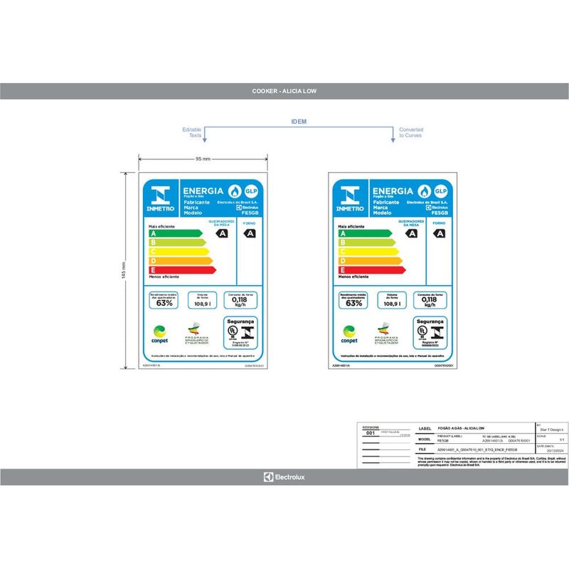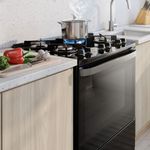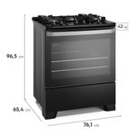 O Fogão 5 bocas Electrolux Preto Efficient Mesa de Vidro, PerfectCook e Grades de Ferro (FE5GB) foi pensado para tornar o dia a dia na cozinha mais prático, mas sem deixar de lado a qualidade e o sabor dos alimentos. CaracterísticasTipo: PisoQuantidade de Bocas: 05Quantidade de Fornos: 02Capacidade dos Fornos: 108,9 LitrosTipo de Acendimento: AutomáticoTipo de Queimadores: SeladosTipo de Grade no Forno: IndividualTipo de Gás: GLP (com primeira conversão gratuita)Painel: EletrônicoLuz no FornoLâmpada Inclusa: SimBotões RemovíveisTrempe: Ferro FundidoMesa de VidroTripla ChamaTecnologia FastCleanTecnologia VaporBake®Função PerfectCook Porta Full Glass Especificações TécnicasModelo: FE5GBFuncionamento: GásTemperatura: 160°C - 280°CVálvula de SegurançaSelo Conpet (Eficiência Energética): ACor: PretoVoltagem: BivoltEAN: 7909569440032Garantia: 12 meses Dimensões e PesoDimensões do produto com embalagem (AxLxP): 990x780x680 mmDimensões do produto sem embalagem (AxLxP): 965x761x654 mmPeso do produto sem embalagem: 42,0 KgPeso do produto com embalagem: 43,0 Kg Instalação do ProdutoRecomendado não se instalar em nichos Itens Inclusos01 Fogão Agente ValidadorProduto possui certificação de segurança compulsória, certificado pela UL-BR 23.1581, organismo acreditado pela CGCRE do Inmetro.