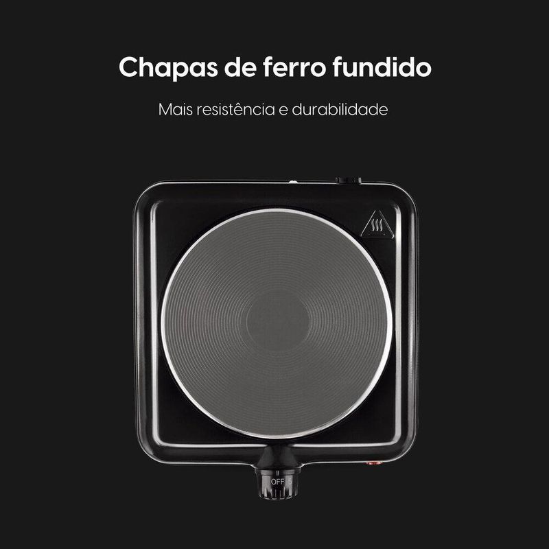 Fogão Elétrico Cooktop 1 Boca - 1.000W 5 Temperaturas 220VO Fogão de Mesa Elétrico Elgin 1 Boca 110V é a combinação perfeita de praticidade, segurança e resistência, sendo ideal para qualquer ambiente. Com 1.000W de potência, aquece rapidamente e é compatível com todos os tipos de panela, garantindo versatilidade no preparo das suas refeições.Ele oferece 5 níveis de ajuste de temperatura para que você controle o calor de acordo com a necessidade de cada receita. Além disso, possui indicação luminosa de aquecimento e proteção avançada contra superaquecimento, trazendo mais segurança durante o uso.Sua chapa de ferro fundido assegura maior durabilidade e mantém o calor por mais tempo. A base estável garante firmeza enquanto você cozinha, e seu design compacto facilita o transporte e o armazenamento. A Elgin oferece 1 ano de garantia com troca expressa.Características:Potência de 1.000WCompatível com qualquer panela5 ajustes de temperaturaProteção contra superaquecimentoIndicação luminosa de aquecimentoChapa de ferro fundidoFácil limpezaDesign compacto e portátilGarantia expressa de 1 anoEspecificações Técnicas:Nome do produto: Fogão Elétrico Cooktop 1 Boca - 1.000W 5 Temperaturas 110VEAN: 7908412515484Voltagens: 220V