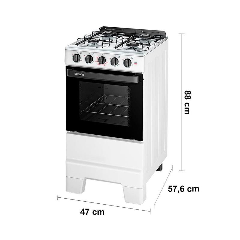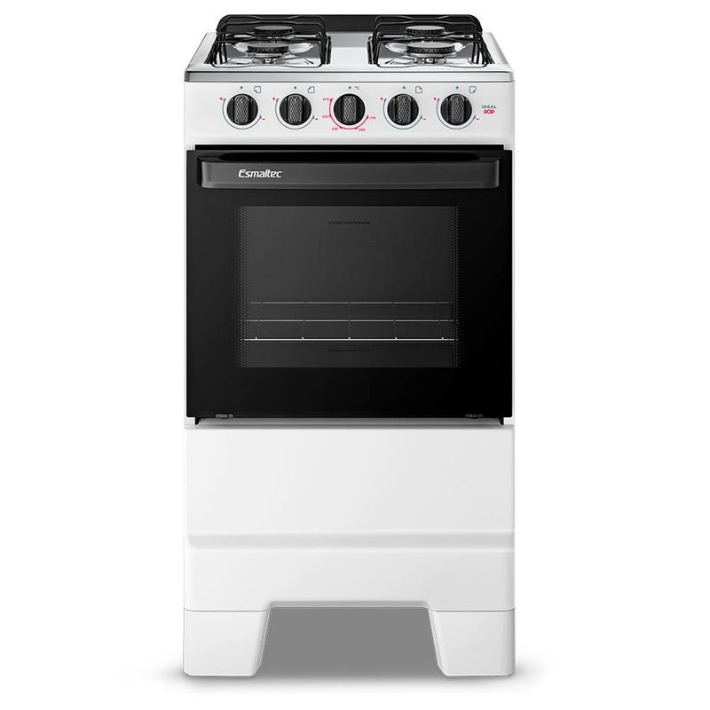 Fogão Esmaltec 4 Bocas Ideal Pop: praticidade à mesa!O Fogão 4 Bocas Esmaltec Ideal Pop a Gás com Mesa Inox Branco é a escolha ideal para quem busca design funcional, durabilidade e economia no dia a dia. Com visual moderno e estrutura resistente, ele se adapta perfeitamente a diferentes estilos de cozinha.Sua mesa em aço inox com espaldar proporciona maior durabilidade e facilidade na limpeza. As trempes duplas esmaltadas oferecem estabilidade durante o preparo das refeições e são práticas de higienizar.O forno com 50 litros de capacidade, equipado com porta em vidro total e vidro interno removível, facilita a visualização e a limpeza. A prateleira ajustável permite versatilidade no preparo de receitas.Os botões removíveis, o puxador ergonômico e os pés altos e retos com encaixe fácil completam a experiência de um produto pensado para oferecer conforto e eficiência no uso diário.Principais Características do Fogão Esmaltec 4 Bocas Ideal Pop:Mesa em aço inox com espaldar: mais resistência, durabilidade e fácil limpeza.Trempes duplas esmaltadas: mais estabilidade para as panelas e praticidade na hora da limpeza.Forno Limpa Fácil com 50 litros de capacidade: espaço ideal para o preparo de receitas do dia a dia.Porta do forno em vidro total com vidro interno removível: limpeza facilitada.Puxador ergonômico e botões removíveis: conforto no manuseio e manutenção descomplicada.Pés altos e retos com encaixe fácil: mais segurança e facilidade de movimentação.Design moderno com ótimo custo-benefício: funcionalidade sem abrir mão da economia.