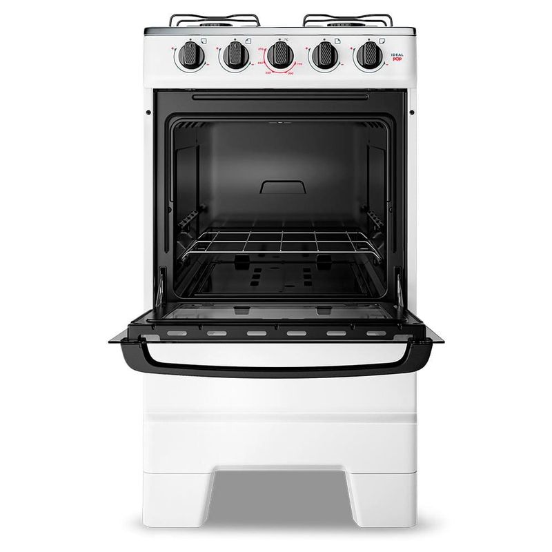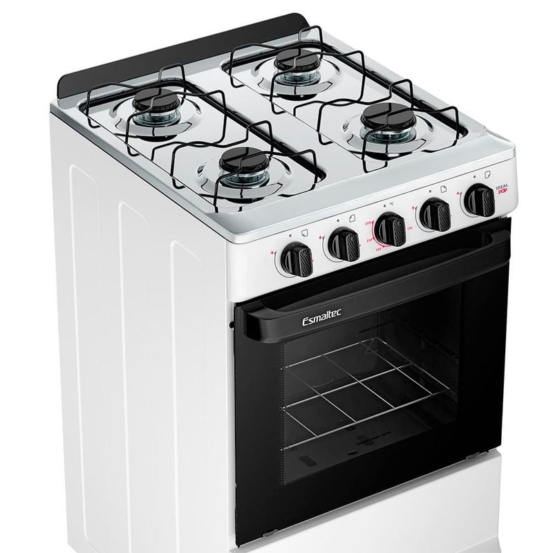 Fogão Esmaltec 4 Bocas Ideal Pop: praticidade à mesa!O Fogão 4 Bocas Esmaltec Ideal Pop a Gás com Mesa Inox Branco é a escolha ideal para quem busca design funcional, durabilidade e economia no dia a dia. Com visual moderno e estrutura resistente, ele se adapta perfeitamente a diferentes estilos de cozinha.Sua mesa em aço inox com espaldar proporciona maior durabilidade e facilidade na limpeza. As trempes duplas esmaltadas oferecem estabilidade durante o preparo das refeições e são práticas de higienizar.O forno com 50 litros de capacidade, equipado com porta em vidro total e vidro interno removível, facilita a visualização e a limpeza. A prateleira ajustável permite versatilidade no preparo de receitas.Os botões removíveis, o puxador ergonômico e os pés altos e retos com encaixe fácil completam a experiência de um produto pensado para oferecer conforto e eficiência no uso diário.Principais Características do Fogão Esmaltec 4 Bocas Ideal Pop:Mesa em aço inox com espaldar: mais resistência, durabilidade e fácil limpeza.Trempes duplas esmaltadas: mais estabilidade para as panelas e praticidade na hora da limpeza.Forno Limpa Fácil com 50 litros de capacidade: espaço ideal para o preparo de receitas do dia a dia.Porta do forno em vidro total com vidro interno removível: limpeza facilitada.Puxador ergonômico e botões removíveis: conforto no manuseio e manutenção descomplicada.Pés altos e retos com encaixe fácil: mais segurança e facilidade de movimentação.Design moderno com ótimo custo-benefício: funcionalidade sem abrir mão da economia.