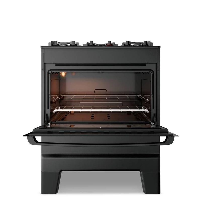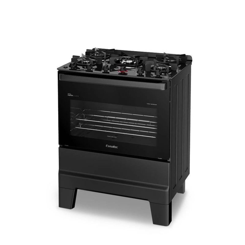 Fogão Esmaltec Ideal Master Glass 5 Bocas T5VFP 5127 Acendimento Automático Preto BivoltO Fogão Esmaltec Ideal Master Glass 5 bocas preto oferece a combinação ideal entre funcionalidade, eficiência e elegância para a sua cozinha. Com mesa de vidro temperado, o design moderno é complementado pela praticidade na limpeza. Seus cinco queimadores proporcionam versatilidade no preparo de diferentes receitas ao mesmo tempo, enquanto o forno de 84L garante espaço e desempenho para assar com qualidade. O acendimento automático torna o uso mais e prático, e o acabamento preto confere sofisticação ao ambiente. Um fogão de piso completo, durável e eficiente para quem busca alto desempenho e design na cozinha.Especificações Técnicas:Marca: EsmaltecModelo: 0104003073Cor: PretoEAN: 7899081754338Voltagem: BivoltPotência: 2,6kWFrequência: 60HzQuantidade de queimadores: 5Timer: NãoClassificação energética: AAcendimento: AutomáticoTipo de gás: GLPPressão do Gás: 2,75kPaVolume Forno: 84LMaterial da mesa: Vidro temperadoTipo: PisoAltura: 92cmLargura: 72cmComprimento: 57,6 cmPeso: 30,9kgGarantia: 12 Meses