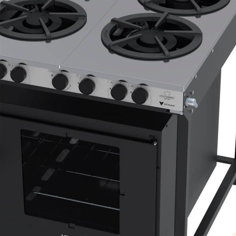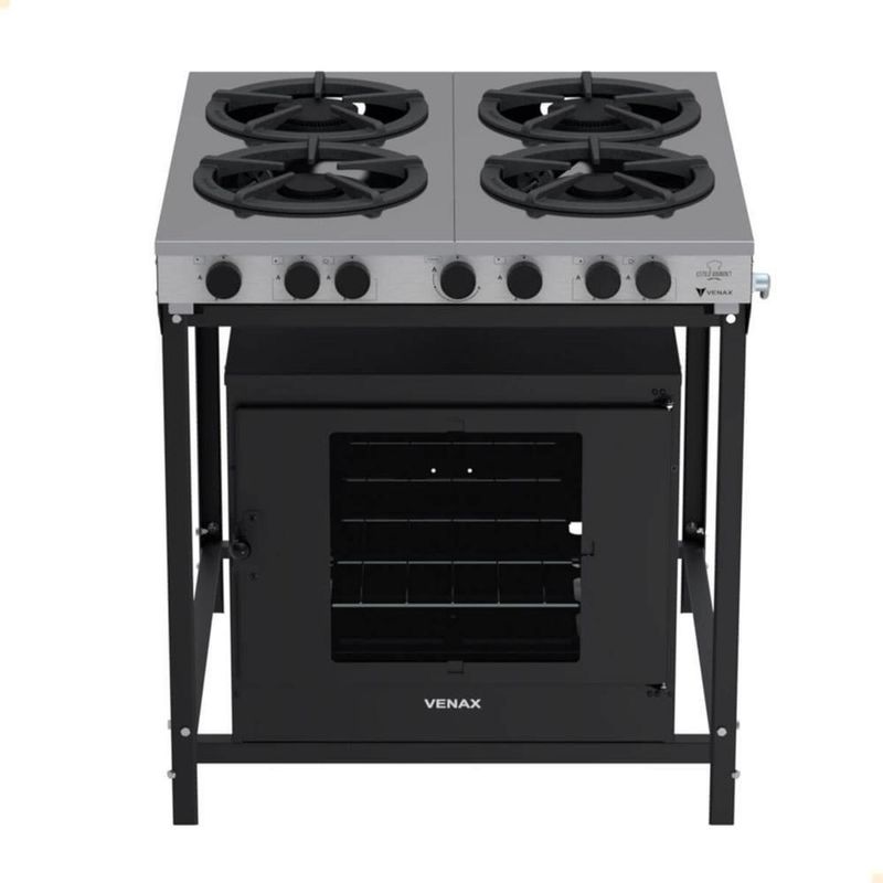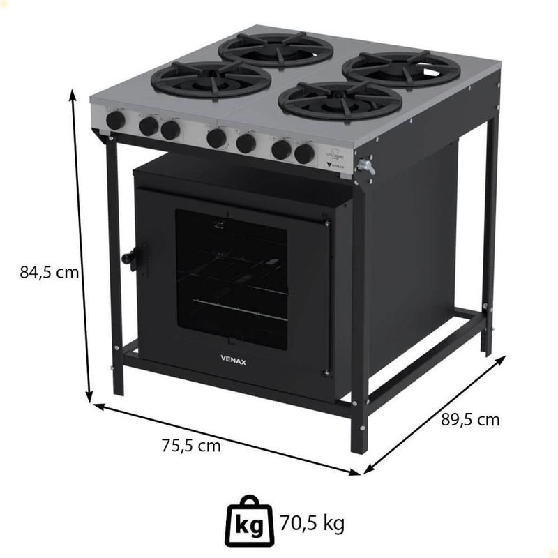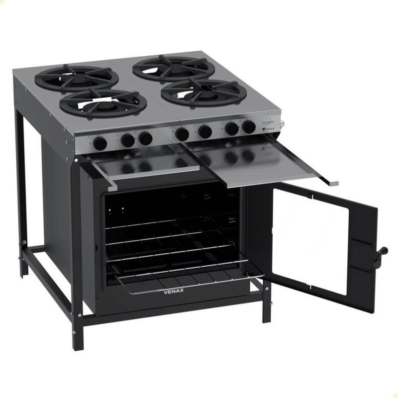 Fogão Industrial Venax Gás 4 Bocas Mesa Em Inox Ffi 430-2 Gourmet 16418- Potência, durabilidade e estilo para sua cozinha profissional!- O Fogão Industrial Venax FFI 430-2 GOURMET é a escolha certa para quem busca alto desempenho com um toque de sofisticação.- Com 4 bocas potentes e mesa em inox, ele une robustez, fácil limpeza e visual moderno.- Ideal para restaurantes, cozinhas industriais e chefs exigentes, ele foi feito para quem não abre mão de eficiência e confiança no preparo de grandes volumes.- Garanta agora o seu e leve sua produção a outro nível!Fogão Industrial Venax Gás 4 Bocas Mesa em Inox FFI 430-2 GOURMET 16418Marca: VenaxModelo: FFI 430-2 GOURMET 16418DESCRIÇÃO- O Fogão Industrial Venax FFI 430-2 GOURMET combina potência, resistência e praticidade para atender as exigências de cozinhas profissionais.- Possui quatro queimadores em ferro fundido, trempes robustas com excelente estabilidade e acendimento manual.- A mesa em aço inox facilita a limpeza, enquanto a estrutura em aço com pintura eletrostática oferece durabilidade e proteção contra corrosão.- Conta com forno com revestimento interno Easy Clean, isolamento em lã de vidro e prateleira regulável, ideal para diferentes preparos.- A porta com visor e sistema de tranca garante segurança no manuseio.- Um equipamento completo para quem busca desempenho e confiança no dia a dia.INFORMAÇÕES- Alimentação: Gás GLP Baixa Pressão.- Número de Queimadores: 2 Queimadores duplos de 150mm e 2 Queimadores de 120mm.- Isolamento do Forno: Lã de Vidro.- Volume: 109 litros.- Potência dos Queimadores de Mesa: 3,00kW (queim. 120mm) 5,50kW (queim. 150mm).- Potência do Queimador do Forno: 4,50 kW.- Material da mesa: Aço inox.- Material da Corpo: Aço Revestido com Pintura Eletrostática na Cor Preta.- Prateleira no Forno: Uma Prateleira Regulável.- Revestimento Interno do Forno: Easy Clean.- Isolamento do Forno: Lã de Vidro.- Material das Trempes: Ferro Fundido.- Dimensões das Trempes: Diametro 30 Cm.- Material dos Queimadores e Espalha Chapa: Ferro Fundido, pintados em preto.ORIENTAÇÕES- Antes de limpar, certifique-se de que o fogão e o forno estejam frios e desligados. Evite usar objetos pontiagudos, esponjas de aço, solventes, produtos abrasivos ou ácidos, pois podem danificar a pintura e o vidro.- Para as partes em inox, esmaltadas ou vidro, use pano ou esponja macia com água morna e sabão neutro. Limpe as trempes, queimadores e bandeja coletora com detergente neutro e nunca mergulhe peças quentes em água fria.- No forno, aqueça por 2 a 5 minutos, retire a grade e use pano úmido com detergente. Seque bem após a limpeza e nunca remova a borracha de vedação.PESO- 70,5 kgGARANTIA- 1 ano contra defeito de fabricaçãoDIMENSÕES- Dimensões do produto (Compr. X Larg. X Alt.): 89,5 x 75,5 x 84,5 cm- Dimensões internas (Larg. X Prof. X Alt.): 50 x 46,8 x 34 cm- Dimensões das Trempes: Diâmetro 30 CmPERGUNTAS FREQUENTES:1. O fogão funciona com gás natural ou apenas GLP?O modelo foi desenvolvido para uso com gás GLP (baixa pressão). Para utilização com gás natural, é necessário consultar a assistência técnica autorizada para possível conversão.2. O forno é adequado para preparos diversos ou apenas para uso leve?Sim, o forno possui 109 litros de capacidade, revestimento interno Easy Clean, isolamento térmico em lã de vidro e prateleira regulável, sendo ideal para uma variedade de preparos com segurança e eficiência térmica.3. A mesa em inox facilita mesmo a limpeza no dia a dia?Sim, a mesa em aço inox não só proporciona um visual profissional, como também facilita muito a limpeza, já que não absorve resíduos e pode ser higienizada com pano úmido e sabão neutro sem dificuldade.4. Os queimadores oferecem boa potência para uso profissional?Sim, o fogão possui quatro queimadores em ferro fundido, sendo dois de alta potência (5,50kW) e dois de potência média (3,00kW), ideais para atender demandas intensas em cozinhas profissionais ou comerciais.5. Como deve ser feita a limpeza correta para garantir a durabilidade?A limpeza deve ser feita sempre com o fogão frio e desligado. Use apenas esponja macia ou pano úmido com sabão neutro. Evite produtos abrasivos, ácidos ou pontiagudos, especialmente nas partes em inox e vidro, para preservar o acabamento e evitar danos permanentes. ProdutoComprimento-cm: 80 | Dias Entrega Fornecedor: 1 | Marca: Venax | Peso Líquido: 0.0000 | EmbalagemAltura-cm: 90 | EmbalagemComprimento-cm: 91 | ProdutoAltura-cm: 78 | ProdutoLargura-cm: 80 | Altura Produto: 78 | Comprimento Produto: 80 | EmbalagemLargura-cm: 78 | Largura Produto: 80 | Cubagem: 0.638820 | Modelo: Gás