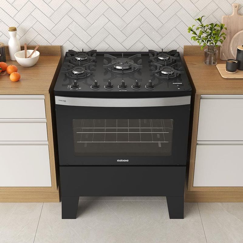 O Fogão Itatiaia 5 Bocas Itaglass Plus é a escolha perfeita para quem busca um fogão robusto, com design moderno e alta performance. Ele conta com trempes individuais em ferro fundido com 8 apoios, que garantem maior estabilidade e segurança para as panelas. O queimador tripla chama é ideal para preparar receitas que exigem mais potência, como carnes e legumes. Ele garante um cozimento rápido e uniforme.O puxador em alumínio escovado garante um toque de sofisticação ao produto, enquanto o forno amplo é perfeito para preparar pratos para toda a família, e seu revestimento limpa-fácil facilita a limpeza. As duas prateleiras permitem que você organize os alimentos de forma eficiente. A lâmpada blindada ilumina o interior do forno, facilitando o manuseio dos alimentos.O botão de acendimento automático na mesa é prático e facilita o uso do fogão. Com um simples toque, você acende os queimadores de forma rápida e segura.