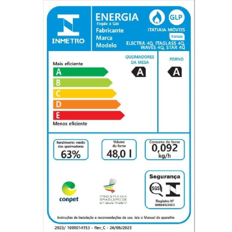 Fogão Itatiaia Itaglas Piso 4 Bocas Preto Mesa De Vidro Bivolt 3700000370O Fogão Itatiaia Itaglas Piso 4 Bocas Preto com Mesa de Vidro Bivolt é a combinação perfeita de praticidade, design e eficiência para a sua cozinha. Com 4 queimadores, incluindo a potente Tripla Chama, esse modelo oferece um desempenho incrível para preparar suas receitas favoritas. A mesa de vidro temperado garantem um visual moderno e elegante para o seu ambiente. Este fogão conta com acendimento automático, tornando o uso mais simples e rápido. A capacidade do forno é de 48 litros, com luz interna e lâmpada inclusa para maior comodidade ao cozinhar. Além disso, o modelo é bivolt e compatível com gás GLP ou GN, oferecendo flexibilidade para diferentes necessidades. classificação energética A assegura eficiência no consumo de energia, enquanto as trempes individuais garantem maior segurança e facilidade de limpeza. O Fogão Itatiaia Itaglas é a escolha ideal para quem deseja praticidade, qualidade e design em um só produto.Especificações Técnicas:Marca: ItatiaiaModelo: 3700000370Cor: Preto fosco Voltagem: BivoltFrequência: 60HzQuantidade de queimadores: 4Timer: Não Classificação energética: A Acendimento: AutomáticoTipo de gás: GLP/GNMaterial da mesa: Vidro Temperado 6mmTipo: PisoLay-out dos queimadores da mesa: Pequeno - 1,7 kW/ Médio W - 2 kWTripla Chamas: 3,3 kWLuz no forno: Sim Lâmpada inclusa: Sim 220VTrempes: IndividualVolume litro: 48Potência elétrica nominal máxima W: 25Dimensões do produto: 47,7 L x 91,3 A x 58,8 P cm Dimensões do produto embalado: 49,3 L x 80,2 A x 61 P cm Peso líquido: 21,3 KgPeso Bruto: 24,3 Kg Garantia: 12 Meses