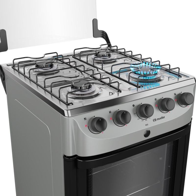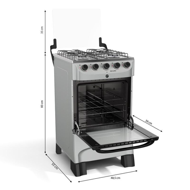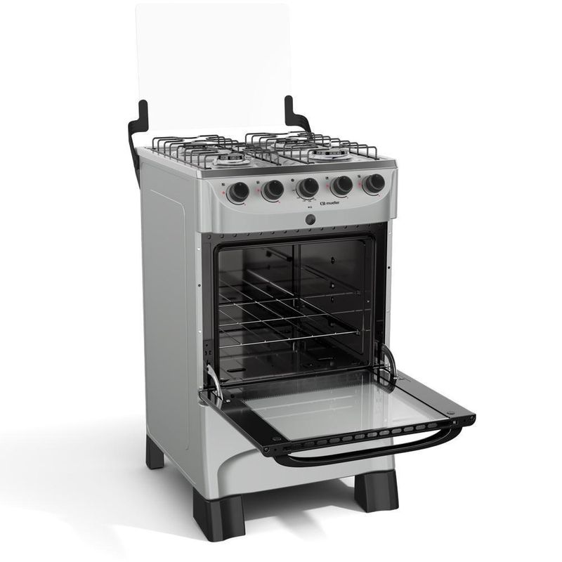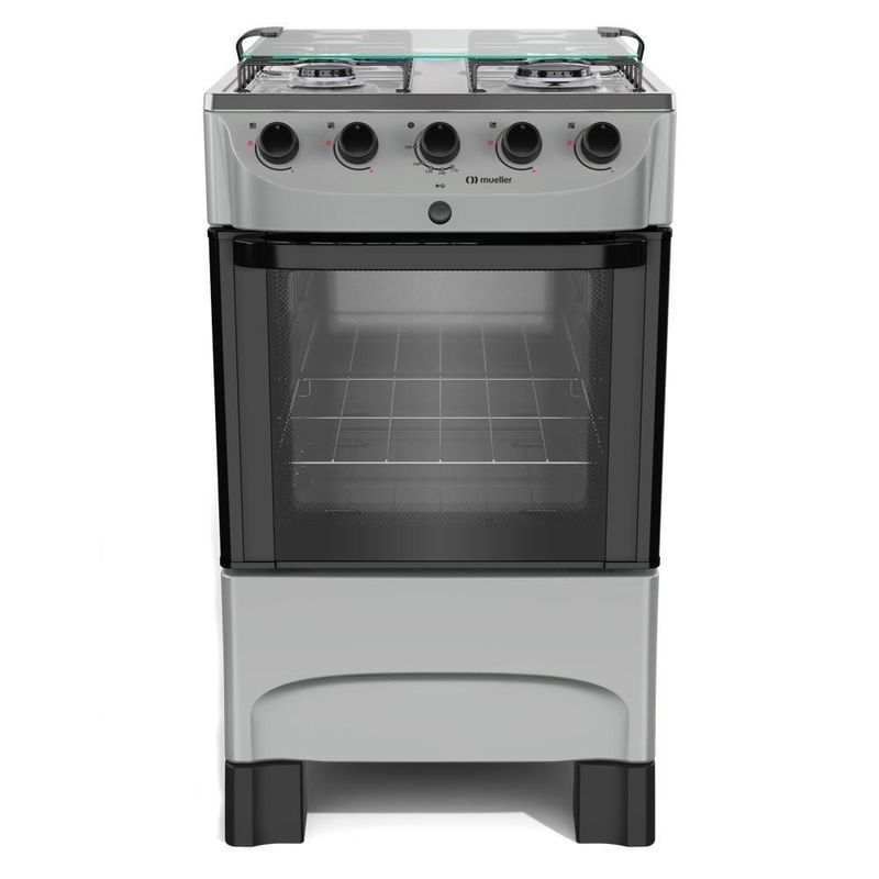 Fogão Mueller 4 Bocas Titânio Com Acendimento Automático Mfi4bbO Fogão MFI4BB é ideal para sua cozinha, e vai te surpreender em cada detalhe! Ele possui forno com visor panorâmico, o maior da categoria, que permite visualizar melhor suas receitas.Possui painel inclinado e botões removíveis que oferecem mais conforto no manuseio e pde na limpeza dos botões. Tem ainda acendimento automático total, para acendimento prático dos queimadores da mesa e do forno. O interior do forno é total clean e os pés mais altos, para facilitar a limpeza da sua cozinha.INFORMAÇÕES TÉCNICAS Altura (cm): 87cm Largura (cm): 48,5cm Profundidade (cm): 55cm Peso (Kg): 16,4Kg Bocas: 4 Bocas Tipo do Fogão: A Gás, de Piso Tipo de acendimento: Automático Mesa: Aço Inox Queimadores: de aço esmaltado em Easy clean Grades de mesa (quantas): 2 grades Botões: Removíveis e inclinados Luz no interior do Forno: Não Prateleiras do forno: Uma grade ajustável em dois níveis de altura Queimador família: 2000 watts de potência Queimador médio: 1700 watts de potência Queimador do forno: 1900 watts de potência Capacidade do Forno: 48,1 litros Voltagem: bivolt IMPORTANTE Os fogões Mueller saem da regulados e preparados para funcionar com gás liquefeito de petróleo (GLP). Para a conversão do produto para Gás l GN é necessário solicitar o de um dos nossos postos autorizados. Assim que receber seu produto, com o Mueller e solicite sua conversão. Será necessário informar o de série do produto. A conversão é dentro do prazo de garantia se o produto não tiver sido utilizado. Na hora de instalar seu fogão observe se o regulador de gás e mangueira estão dentro da validade. Confira o ano de vencimento gravado no regulador e também na mangueira. Eles não devem ser utilizados por mais de 5 anos. Ao comprar um regulador , observe a medida kg/h. Reguladores de 1 kg/h são ideais para os tradicionais eletros de 4 bocas, já os de 2 kg/h são recomendados para eletros de 5 bocas ou com queimadores como o Tripla ou Dupla Chama. Voltagem: Bivolt | Mesa: em inox | Tipo de acendimento: Acendimento automático total, na mesa e no forno | Largura (cm): 48,5cm | modelo: Fogão 4B Titanio MFI4BB | Porta do forno: De vidro | Altura (cm): 87cm | Peso (Kg): 16,4Kg | Cor: Titânio | Queimadores: de Aço Esmaltado em Easy clean | Tipo de Fogão: A Gás, de Piso | Prateleiras do forno: Uma grade ajustável em dois níveis de altura | Quantidade de bocas: 4 Bocas