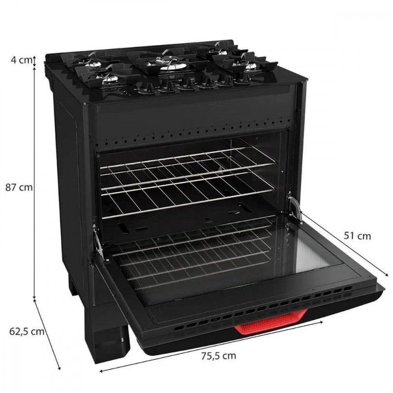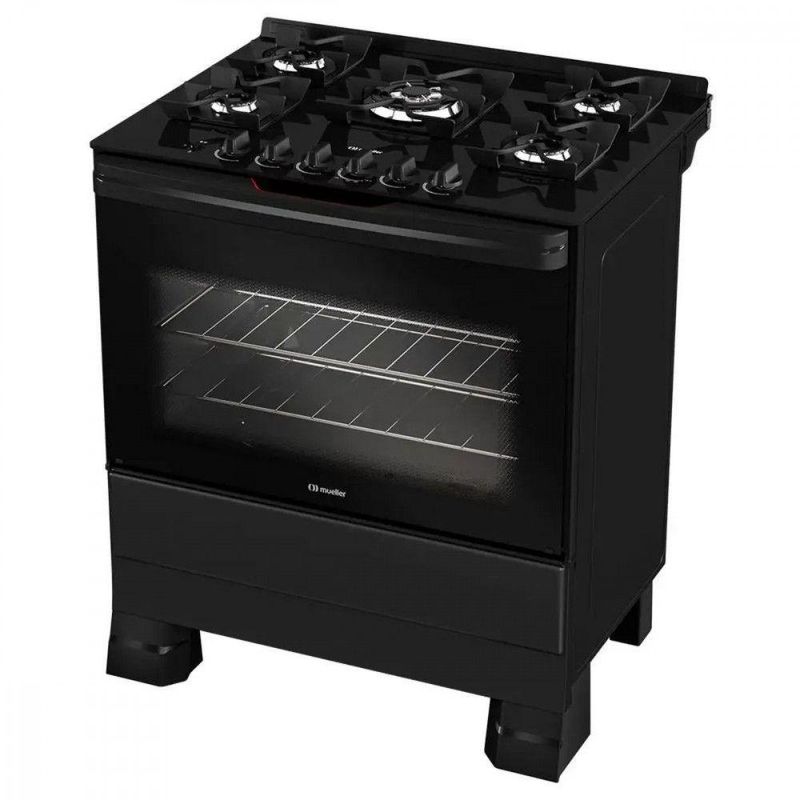 Fogão Mueller 5 Bocas Com Mesa De Vidro E Grades De Ferro Preto BivoltA escolha perfeita para quem valoriza tempo, design e praticidade. Descubra a beleza e as vantagens do novo fogao Mueller 5 bocas com mesa de vidro MFV5BF. Com seu design moderno e funcional, ele torna sua rotina muito mais pratica. A mesa ampla em vidro temperado traz o queimador central tripla chama para receitas prontas num instante, e as grades de ferro fundido exclusivas da Mueller proporcionam panelas firmes em todas as suas receitas. Tenha o novo fogao Mueller MFV5BF e vivencie uma nova experiencia na sua cozinha.Especificações Técnicas: Modelo: MFV5BFMesa de vidro temperado: simGrades: individuais de ferro fundido com 6 pontos de apoio e sistema de encaixe exclusivoBotoes: removiveis e sobrepostos a mesaAcendimento: automatico totalPuxador da porta: ergonomicoQueimador: Tripla Chama com super potencia de 3,7KWPorta do forno: vidro totalProtecao termica com duplo vidro no forno: simForno com valvula de seguranca: simLuz no forno: A lampada nao acompanha o produtoForno: com acabamento total cleanForno: com duas grades ajustaveis em dois niveis de alturaQueimadores familia: Dois - 2KWQueimadores medios: Dois - 1,7KWQueimador do forno de alta performance: - 3,0KWQueimadores de aco esmaltado com encaixe vedado a mesaDimensoes do produto:Altura: 91 cmLargura: 75 cmProfundidade: 62,5 cmPeso: 31,8 kgGarantia: 12 meses