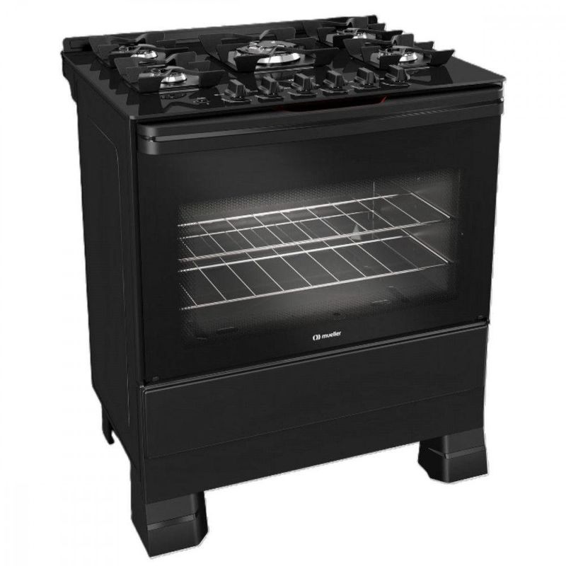 Fogão Mueller 5 Bocas Com Mesa De Vidro E Grades De Ferro Preto BivoltA escolha perfeita para quem valoriza tempo, design e praticidade. Descubra a beleza e as vantagens do novo fogao Mueller 5 bocas com mesa de vidro MFV5BF. Com seu design moderno e funcional, ele torna sua rotina muito mais pratica. A mesa ampla em vidro temperado traz o queimador central tripla chama para receitas prontas num instante, e as grades de ferro fundido exclusivas da Mueller proporcionam panelas firmes em todas as suas receitas. Tenha o novo fogao Mueller MFV5BF e vivencie uma nova experiencia na sua cozinha.Especificações TécnicasMarca: Mueller Modelo: MFV5BFVoltagem: BivoltMesa de vidro temperado: simGrades: individuais de ferro fundido com 6 pontos de apoio e sistema de encaixe exclusivoBotoes: removiveis e sobrepostos a mesaAcendimento: automatico totalPuxador da porta: ergonomicoQueimador: Tripla Chama com super potencia de 3,7KWPorta do forno: vidro totalProtecao termica com duplo vidro no forno: simForno com valvula de seguranca: simLuz no forno: A lampada nao acompanha o produtoForno: com acabamento total cleanForno: com duas grades ajustaveis em dois niveis de alturaQueimadores familia: Dois - 2KWQueimadores medios: Dois - 1,7KWQueimador do forno de alta performance: - 3,0KWQueimadores de aco esmaltado com encaixe vedado a mesaAltura: 91 cmLargura: 75 cmProfundidade: 62,5 cmPeso: 31,8 kgGarantia: 12 meses