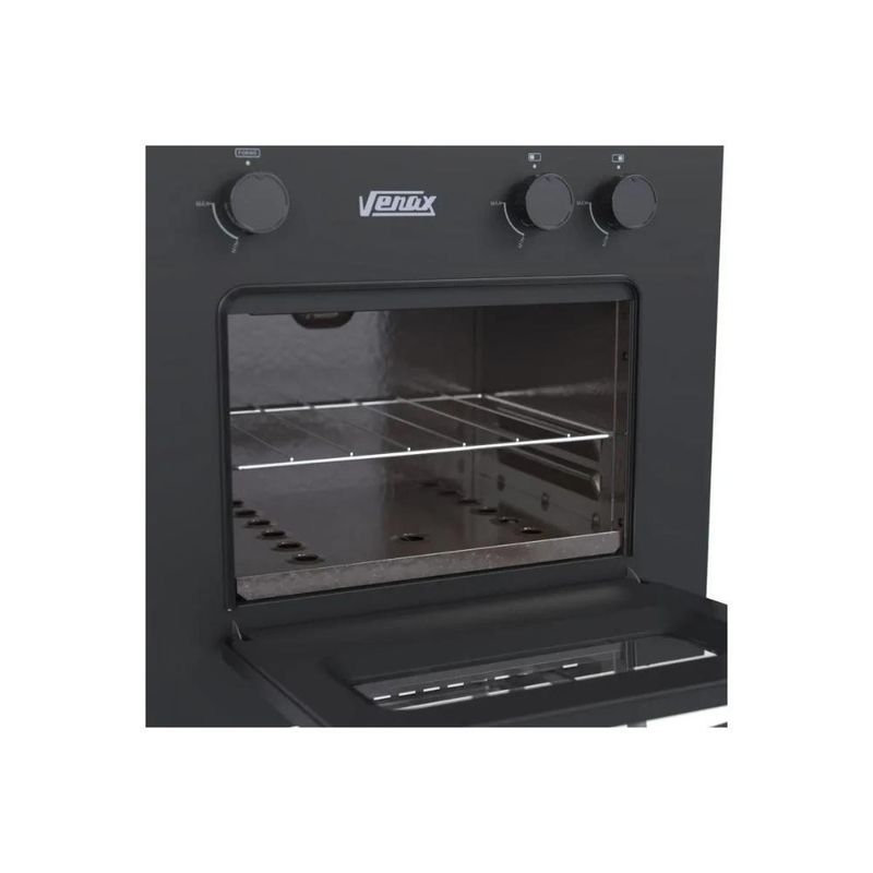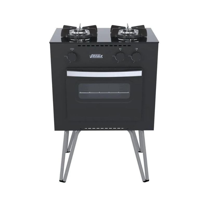 Fogão Portátil Gemini Vetro 2 Bocas Gás GLP Venax PretoFogão Portátil Gemini Vetro 2 Bocas Gás GLP VenaxO Fogão Portátil Venax Gemini Vetro é a combinação ideal de praticidade, design e eficiência para sua cozinha. Compacto, mas com ótimo desempenho, ele conta com 2 bocas a gás que garantem rapidez no preparo das refeições e um forno com capacidade de 22 litros, perfeito para assar, gratinar e aquecer alimentos. Seu acabamento em preto fosco traz um visual moderno e elegante, enquanto a mesa em inox e as trempes esmaltadas oferecem durabilidade e fácil limpeza. O forno possui revestimento interno Easy Clean, que facilita a higienização no dia a dia, além de garantir mais praticidade no uso. Portátil e versátil, é indicado para cozinhas pequenas, áreas gourmet, casas de praia, camping ou qualquer ambiente onde o espaço seja limitado, mas a necessidade de funcionalidade e estilo seja prioridade. Com a qualidade reconhecida da marca Venax, este fogão portátil é a escolha certa para quem quer unir beleza, eficiência e resistência em um único produto.Descrição do produtoMarca: VenaxQuantidade de Bocas: 2 bocasCapacidade do forno: 22 litrosAlimentação: Gás GLPAcendimento: ManualMesa: InoxAltura: 86 cmLargura: 54 cmComprimento: 39 cmIndicação de uso: Cozinhas pequenas, áreas gourmet, camping, casas de praiaPeso do Produto 14,09 KgGarantia do Fabricante: 12 mesesImagens meramente ilustrativas, todos os itens que ambientam o produto não estão inclusos.Marca: Venax | Tipo de ignição: Manual | Acabamento da mesa: Vidro | Modelo: Vetro | Com tampa: Não | Tipo de gás: GLP | Tipo de montagem: De chão | Com pés: Sim | É conversível a GN: Não | Com chapa: Não | É industrial: Não | Quantidade de bocas: 2 Cor: Preto