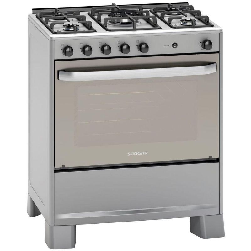 Fogão Suggar Select 5 Queimadores Prata Inox FGISL510PRIX Bivolt Fogão Suggar Select 5 Queimadores: Domine a arte de cozinhar e conquiste a maestria culinária!Eleve suas receitas a um patamar de sabor e praticidade com o Fogão Suggar Select 5 Queimadores. Com design moderno, mesa em inox e funcionalidades inovadoras, este fogão se torna a peça central da sua cozinha, proporcionando uma experiência culinária incomparável.A mesa de inox oferece elegância e facilita a limpeza, enquanto os cinco queimadores esmaltados, sendo um queimador triplo chama central, garantem um cozimento rápido, uniforme e preciso para todos os tipos de pratos. O acendimento automático total na mesa e no forno proporciona praticidade e segurança no dia a dia, enquanto o forno espaçoso de 56 litros com forno fácil de limpar e proteção térmica com vidro duplo garante resultados perfeitos em suas receitas. Para completar, o puxador em aço pintado na cor do fogão e os pés elevados proporcionam um design clean e facilitam a limpeza.Confira as principais características do Fogão Suggar Select 5 Queimadores:Design moderno e clean com mesa em inoxCinco queimadores esmaltados de diferentes potências, incluindo um queimador triplo chama central, para um cozimento rápido, uniforme e precisoAcendimento automático total na mesa e no forno para praticidade e segurançaForno espaçoso de 56 litros com forno fácil de limpar e proteção térmica com vidro duploPuxador em aço pintado na cor do fogãoPés elevados que facilitam a limpezaBivolt para em qualquer voltagemEspecificações técnicas:Marca: SuggarModelo: FGISL510PRIXCor: PrataVoltagem: BivoltNúmero de queimadores: 5 (incluindo 1 queimador triplo chama central)Capacidade do forno: 56 litrosTipo de forno: ConvencionalAcendimento: Automático totalMesa: InoxMaterial dos queimadores: EsmaltadoPés: ElevadosOutras características: Forno fácil de limpar, proteção térmica com vidro duplo, puxador em aço pintadoDimensões:Altura: 90,3 cmLargura: 75 cmProfundidade: 63,7 cmPeso: 30,5 kgGarantia: 1 ano do fabricanteDimensões (L x A x P) cm - 75,0x91,3x63,7 cmPeso - 30,5 kgNúmero de Queimadores - 5Garantia de 1 ano - SimCor - PrataTipo de montagem - De PisoTensão - BivoltCertificado - Não informadoGarantia - 12 meses pelo fabricanteModelo - FGISL510PRIX