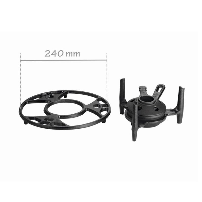 Fogareiro Fogo Forte Aparador Ferro Panela Mineira 24x11cm O Fogareiro Fogo Forte Com Aparador da Panela Mineira é composto de base, espiriteira (recipiente onde coloca-se álcool), regulador de chama, suporte e grelha. Sobre esse fogareiro pode-se colocar panelas e utensílios de ferro de diversos modelos e tamanhos, assim mantendo o alimento quente. Muito utilizado por restaurantes, hotéis, bares em seus buffets. O fogareiro deve ser aceso com o álcool em gel 70% ou 90%. Sua capacidade é de aproximadamente 300ml, o suficiente para manter a chama acesa por cerca de 1h30. Orientação de Uso e Conservação:Antes do primeiro uso: Lave com água e sabão, seque bem com um pano e leve ao fogo para remover toda a umidade. Já vem pronta para uso, então não precisa ser curada. Guarde em um local seco. Após cada uso: Lave com água e sabão, usando uma esponja ou escova para remover todos os resíduos de alimentos. Se restarem resíduos, ferva água com um pouco de detergente para soltá-los. Pintura: Revestimento atóxico que garante durabilidade e proteção prolongada, sem causar nenhum dano à saúde. Características Técnicas e Medidas: Linha: Bares e Restaurantes.Material: Ferro Fundido.Modelo: Fogo Forte.Diâmetro: 24cm.Altura: 11cm.Peso: 2,3Kg. Itens Inclusos: 01 Suporte Fogareiro em Ferro Fundido.01 Aparador em Ferro Fundido 24cm.01 Regulador Chama.01 Espiriteira. Código: 782PMProdutoLojaPlast.