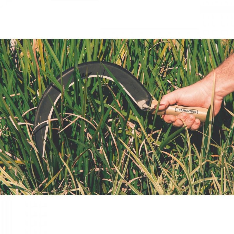 Foicinha para Pasto Tramontina em Aço com Cabo de Madeira Para executar as principais atividades na agricultura, esteja munido de ferramentas de qualidade que proporcionam mais eficiência e praticidade no dia a dia do campo como a foicinha para pasto Tramontina em aço com cabo de madeira. Perfeita para cortar pasto com eficiência e qualidade, a ferramenta é produzida em aço carbono e possui lâmina temperada com acabamento envernizado, que proporciona maior afiação e mais resistência. Além disso, ela conta com cabo em madeira, que vai deixar seu trabalho muito mais fácil. Com a Tramontina, suas tarefas no campo ficam mais fáceis de serem executadas! - A foicinha é temperada em todo o corpo da peça, proporcionando maior resistência e menor desgaste durante o uso.- Fabricada em aço carbono especial de alta qualidade.- A lâmina recebe acabamento envernizado e sua afiação proporciona excelente durabilidade do fio.- O cabo de 13 cm desta ferramenta, além de possuir ótima resistência, é produzido com madeira de origem renovável.- Cabo com acabamento envernizado, para um melhor acabamento e apresentação do produto. A camada protetora em verniz incolor realça sua tonalidade, concedendo brilho e um toque mais liso ao produto.
