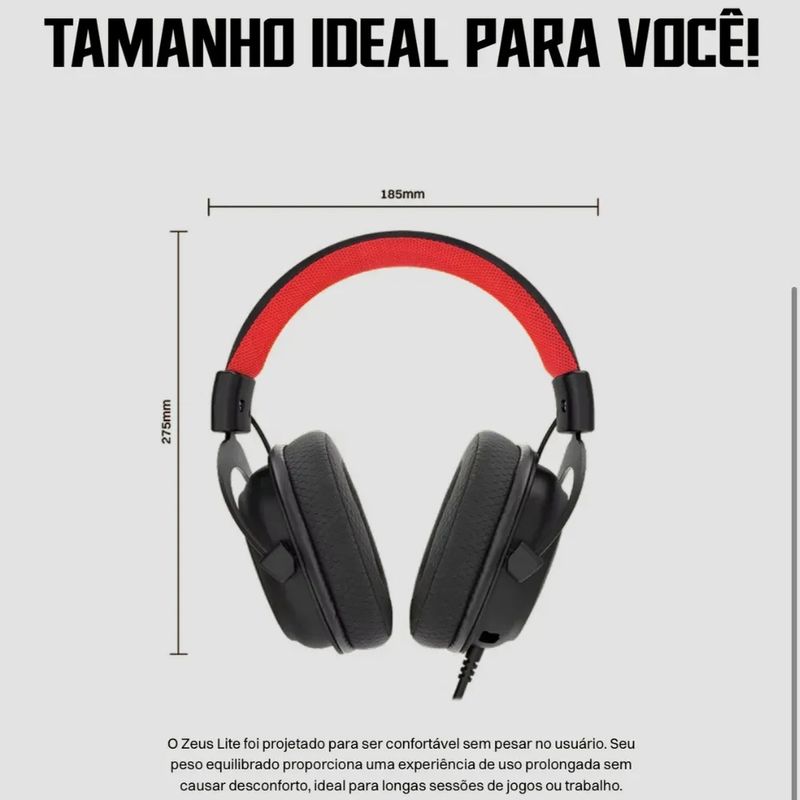 Qual é a maior frustração ao escolher um headset? Ou ele tem áudio excelente mas é desconfortável, ou é confortável mas o som é amador. O Headset Redragon Zeus Lite H510-LT foi desenvolvido justamente para resolver esse dilema, oferecendo qualidade profissional combinada com praticidade no dia a dia.A resposta em frequência de 20 Hz a 20 kHz coloca este headset na mesma categoria de produtos profissionais muito mais caros. Isso significa que você conseguirá identificar detalhes sonoros que outros fones simplesmente ignoram: as diferentes tonalidades de voz em filmes legendados, os efeitos sonoros subtis em jogos imersivos, e a qualidade real das suas músicas favoritas.A sensibilidade de 110 dB garante volume adequado para diferentes ambientes, desde uma sala silenciosa até um espaço com um pouco de ruído de fundo. Você não precisará de amplificadores externos ou configurações complicadas: conecte, coloque no conector P3 e aproveite.Agora, o que torna este headset especial é a combinação inteligente de componentes desmontáveis. O microfone pode ser removido quando não necessário, eliminando aquele peso incômodo que alguns usuários relatam após horas de uso. O cabo também é desmontável, o que significa que desgastes localizados não inutilizarão todo o fone – você simplesmente substitui a parte danificada.O diafragma de 5,3 cm foi calibrado para entregar graves equilibrados (não aquele boom exagerado) e agudos limpos (sem aquele zumbido irritante que cansa os ouvidos). Resultado: você consegue passar horas usando sem fadiga auditiva.A iluminação LED adiciona que o visual de qualidade, enquanto o design em preto elegante mantém a seriedade profissional. Homologado Anatel número 209838493120, este é um headset regulamentado e seguro para uso contínuo.Qualidade profissional não precisa ser complicada.
