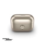 O Fone de Ouvido Moto Buds Loop Swarovski foi desenvolvido para oferecer conforto, estilo e qualidade sonora premium no seu dia a dia. Com design moderno e compacto, ele combina leveza com tecnologia de ponta para uma experiência completa. Equipado com Spatial Audio, tecnologia Sound by Bose e EVO, o Moto Buds Loop entrega som envolvente e equilibrado, perfeito para música, chamadas e entretenimento. Sua resistência à água com certificação IP54 nos earbuds e IPX2 no case garante maior durabilidade no uso diário.A autonomia impressiona: são até 8 horas de reprodução contínua, com mais 31 horas no estojo de carregamento, totalizando até 39 horas de uso. Leve e ergonômico, cada earbud pesa apenas 6,21g, enquanto o estojo com os fones juntos pesa 52.48g, proporcionando praticidade para levar a qualquer lugar. Com conectividade Bluetooth, microfone integrado e controle de volume, o Moto Buds Loop garante chamadas nítidas e fácil operação. Um acessório indispensável para quem busca qualidade de áudio, mobilidade e estilo. Os fones de ouvido Open Wearable Stereo (OWS) foram projetados para permitir que você ouça músicas ou podcasts sem isolar você do ambiente. Com essa tecnologia, você pode desfrutar de um áudio nítido e de alta qualidade enquanto permanece totalmente ciente dos sons ao seu redor, o que é ideal para manter a segurança durante atividades como esportes, exercícios ao ar livre e até mesmo no dia a dia.