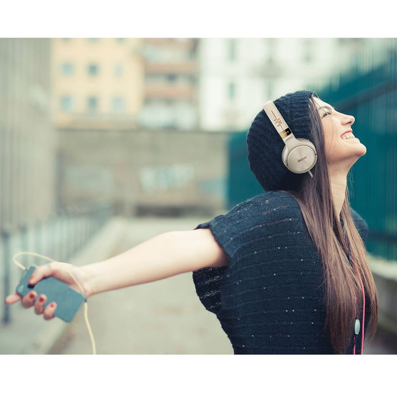Construído com componentes que priorizam a fidelidade de som e suavização de ruídos, o Fone de Ouvido Philco PFO02G Wave Flat vai tornar seus momentos ainda mais especiais. Os potentes alto-falantes possibilitam a melhor resposta e preservação da autenticidade das mídias reproduzidas, enquanto a construção ergonômica, ajustes de altura e largura, e conchas almofadadas se adequam melhor e proporcionam o uso agradável por horas. O PFO02G possui botão multifunção integrado no cabo e botão que possibilita atender ou rejeitar ligações e controlar a reprodução das músicas. Conta também com cabo flat que não enrola, emborrachado e com design que garante maior durabilidade e evita nós indesejados. • Arco de cabeça ajustável • Microfone embutido no cordão • Cabo padrão TRRS que permite para atender/rejeitar chamadas e controlar músicas com botão multifunção • Alça de cabeça almofadada • Concha auditiva almofadada redonda • Driver com imãs de neodímio • Diâmetro do driver 30mm (x 2) • Impedância de 32 ohms • Frequência de resposta: 20 até 20.000 Hz • Sensibilidade de áudio: -42 dB • Cabo com comprimento de 1,20m • Cor: Dourado.