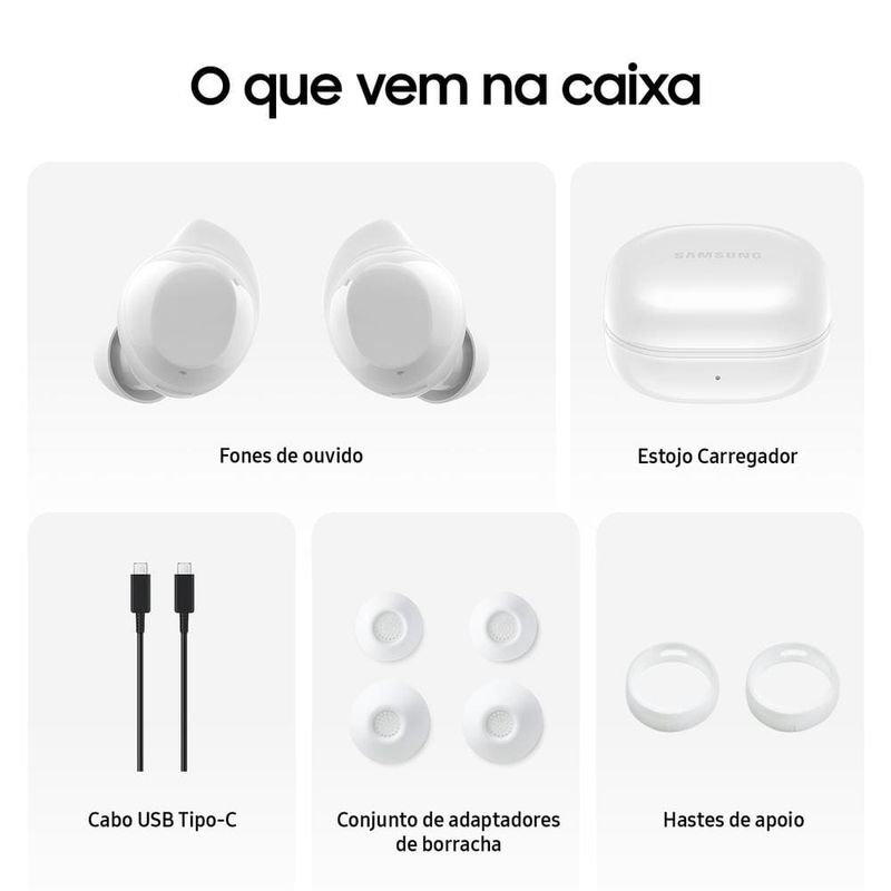 Fones de Ouvido Galaxy Buds Core - com cancelamento ativo de ruído, áudio balanceado e IA com intérprete em tempo real! Desfrute de som puro e tecnologia inteligente com o Fones de Ouvido Samsung Galaxy Buds Core, o modelo que combina desempenho, conforto e inovação. Seu design intra-auricular oferece ajuste firme e leve. Cancelamento Ativo de Ruído (ANC)Cancelamento Ativo de Ruído (ANC) reduz os sons externos para que você possa mergulhar completamente em suas músicas ou podcasts. A tecnologia de três microfones garante chamadas nítidas e sem interferências, captando sua voz com precisão em qualquer ambiente. Galaxy AICom integração ao Galaxy AI, o Buds Core traz o revolucionário recurso de Intérprete em tempo real. Você ouve traduções diretamente no ouvido, sem precisar olhar para o smartphone — perfeito para conversas e viagens internacionais. Graves EquilibradosOs Galaxy Buds Core também entregam áudio equilibrado, com graves marcantes e agudos cristalinos. Cada detalhe do som é otimizado para oferecer uma experiência envolvente e precisa. ConfortáveisProjetados para conforto duradouro, os fones possuem pontas de silicone macias e estrutura leve de apenas 5,3g por lado. Além disso, contam com proteção IP54 contra respingos e poeira, para te acompanhar no dia a dia ou durante exercícios. Bateria que DuraCom até 35 horas de reprodução total (incluindo o case de carregamento), o Galaxy Buds Core está sempre pronto para acompanhar você em qualquer ritmo. A conexão Bluetooth 5.4 garante estabilidade e baixa latência para música e chamadas sem interrupções. Cancelamento Ativo de Ruído para imersão total Intérprete em tempo real via Galaxy AI Som equilibrado com graves marcantes Autonomia de até 35 horas Design leve, ergonômico e resistente IP54 Descubra mais produtos e inovações Samsung e aproveite todas as novidades agora mesmo!