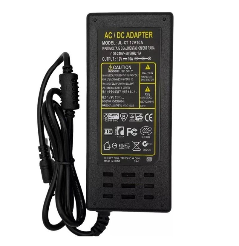 Fonte 12v 10A Bivolt 7 Amperes Plug P4 Preta - 120WFonte de energia de 5 amperes, recomendado para CFTV, fita led e outros equipamentos que utilizam saída 12v e no máximo 10 amperes.CARACTERÍSTICAS- Alimentação: Bivolt Automático FULL RANGE 100 a 240 Volts AC- Saída: 12 Volts DC com PLUG P4 de 5,5 mm x 2,1 mm- Corrente Máxima: 10 Amper- Potência Máxima: 120W- Polaridade: Positiva no Centro do PLUG- Proteção contra curto circuito e sobrecarga na saída- Proteção contra sobre temperatura (aquecimento)- Frequência de operação de 50 a 60 Hz- Saída de tensão totalmente estabilizada- Filtros EMI e EFI- Comprimento da fonte: Aproximadamente 1,20 metros.
