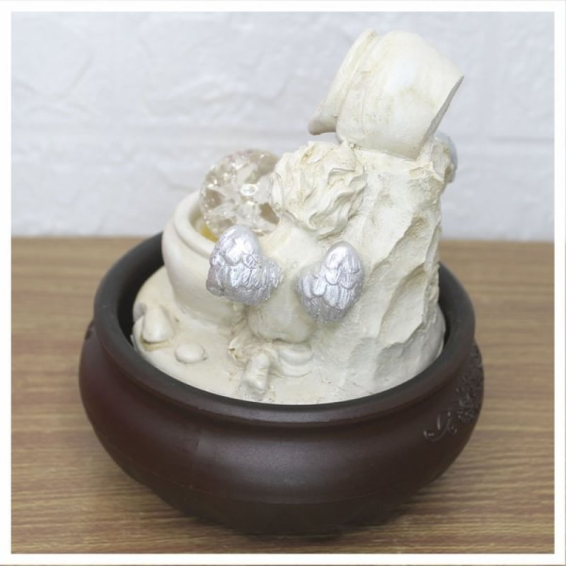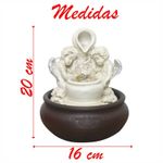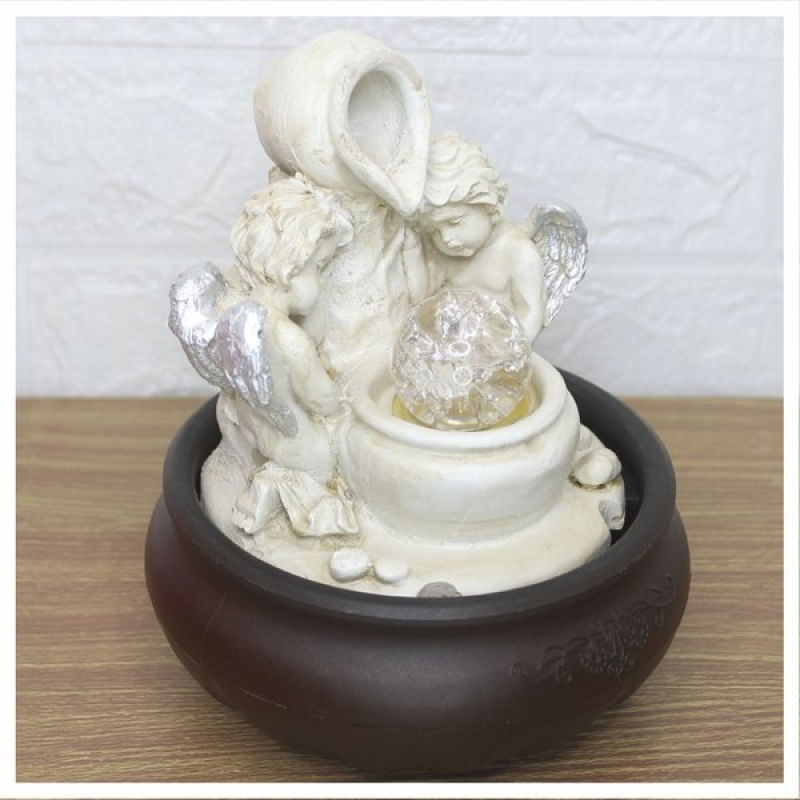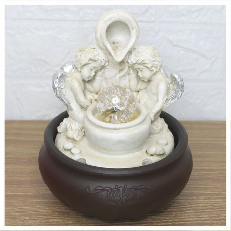 Fonte De Água Decorativa Cascata Anjos Luz De Led Bivolt - Fonte D'água Decorativa. Se você gosta de ter o som de água corrente por perto, para lhe acalmar e levar embora as más energias do ambiente, saiba que essa fonte trará para sua casa o belo simbolismo do equilíbrio e de uma purificação profunda. Para meditar, use incensos de alfazema, lírio, mirra, sândalo, acácia e flor de lótus. Energias positivas. A fonte de água é símbolo de positividade, amor, felicidade e paz. Capaz de auxiliar nas meditações, está ligado à sabedoria e ao equilíbrio. Traz ao ambiente elevação espiritual e paz. Seu ambiente ficará muito tranquilo e sereno, excelente para Feng Shui e energizar ambientes, seja no escritório ou mesmo em casa para atrair boas vibrações nos negócios, relacionamento e vida espiritual. - Quanto devo encher de Água? • R: Até cobrir a bombinha Conteúdo da embalagem: • 01 Fonte de água decorativa com 4 Luzes de led embutido. • 01 Bomba D’agua ( Hmax: 0-0.6M / Qmax: 180l/h ) • Potência: 3.5W - Material da fonte: Resina, Plástico. Medidas Aproximadas: • Altura: 20cm • Largura: 16cm • Comprimento: 16cm Características Gerais do Produto: • Material: Resina Garantia: • Garantia contra avarias no transporte