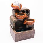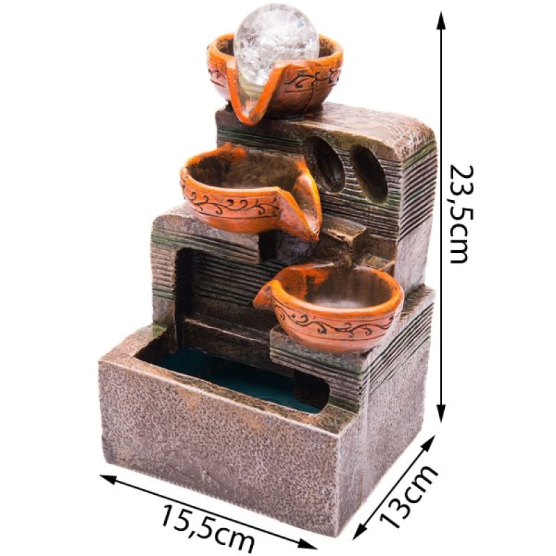 Fonte De Água Ornamental Decorativa Cascata Luz Led - 220V - Fonte D'água decorativa Fonte D'água Decorativa. Se você gosta de ter o som de água corrente por perto, para lhe acalmar e levar embora as más energias do ambiente, saiba que essa fonte trará para sua casa o belo simbolismo do equilíbrio e de uma purificação profunda. Para meditar, use incensos de alfazema, lírio, mirra, sândalo, acácia e flor de lótus. Energias positivas. A fonte de água é símbolo de positividade, amor, felicidade e paz. Capaz de auxiliar nas meditações, está ligado à sabedoria e ao equilíbrio. traz ao ambiente elevação espiritual e paz. Seu ambiente ficará muito tranquilo e sereno, excelente para Feng Shui e energizar ambientes, seja no escritório ou mesmo em casa para atrair boas vibrações nos negócios, relacionamento e vida espiritual. - Quanto devo encher de Água? • R: Até cobrir a bombinha Conteúdo da embalagem: • 01 Fonte de água decorativa • 01 Esfera de vidro (Atenção frágil – deve-se ter cuidado ao manuseá-la). • 01 Bomba D’agua ( Hmax: 60cm / Qmax: 180l/h ) com 4 Luzes de led embutida. - Material da fonte: Resina Medidas Aproximadas: • Altura: 23,5cm • Largura: 13cm • Comprimento: 15,5cm Características Gerais do Produto: • Material: Resina • Cor: Marrom • Dimensões aproximadas: Altura: 23,5cm; Largura: 13cm; Comprimento: 15,5cm • Potência: 3w Garantia: • Garantia contra avarias no transporte