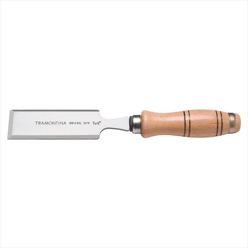 Formão Chanfrado 1.1/2 Tramontina Master em Aço Cromo Vanádio com Cabo de MadeiraEntalhe e esculpa com precisão!O Formão Chanfrado 1.1/2 Tramontina Master em Aço Cromo Vanádio com Cabo de Madeira é a ferramenta ideal para carpinteiros, marceneiros e amantes das artes em madeira que buscam qualidade e eficiência em seus trabalhos. Seja para entalhar peças delicadas ou esculpir detalhes finos, este formão irá garantir resultados excepcionais.Diferenciais:Lâmina em aço cromo vanádio temperado, lixado, chanfrado e polido para máxima eficácia.Cabo de madeira ergonômico envernizado que proporciona segurança e conforto durante o uso.Camada de verniz ou pintura anti corrosiva que garante durabilidade e qualidade ao produto.Resistência em uso intenso comprovada por testes práticos, assegurando a durabilidade do Formão Chanfrado Tramontina.Mais sobre o Produto:Ideal para entalhar e esculpir peças em madeira, proporcionando acabamentos precisos e refinados. A lâmina em aço cromo vanádio garante durabilidade e eficiência, enquanto o cabo de madeira ergonômico facilita a manipulação e garante segurança ao operador.Dicas de Uso:Utilize o formão chanfrado para criar detalhes e acabamentos em projetos de marcenaria, carpintaria e esculturas em madeira. Mantenha a lâmina afiada para resultados mais precisos e utilize o cabo ergonômico para maior controle durante o trabalho.Ficha Técnica:Marca: TramontinaMaterial da Lâmina: Aço Cromo VanádioMaterial do Cabo: MadeiraTamanho: 1.1/2 polegadasCategoria: Ferramentas de Corte