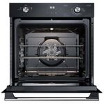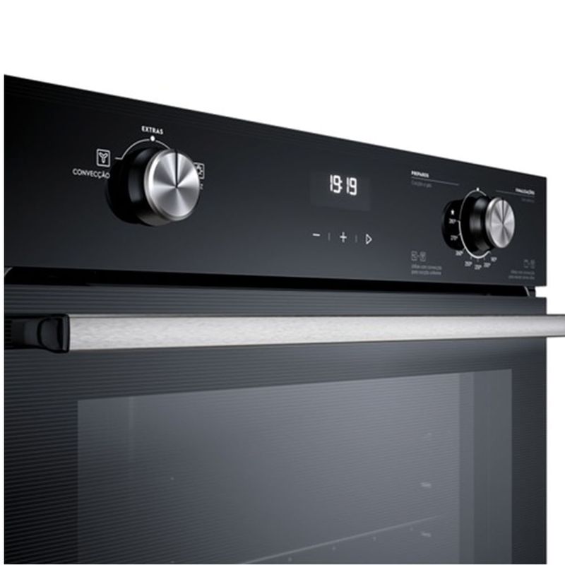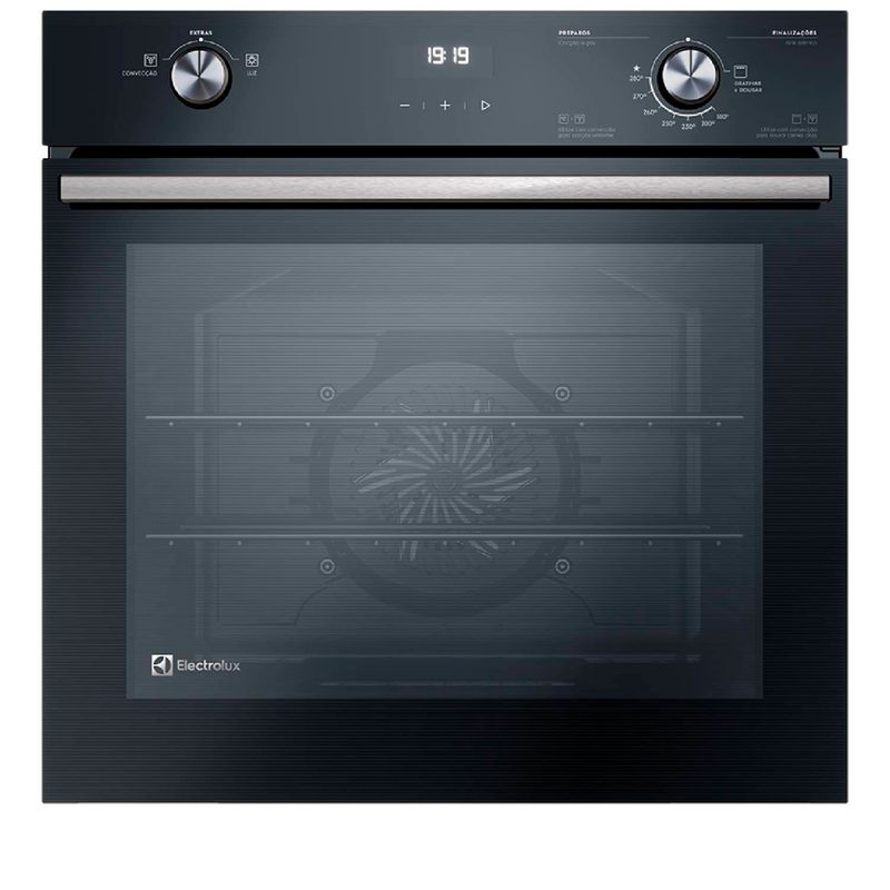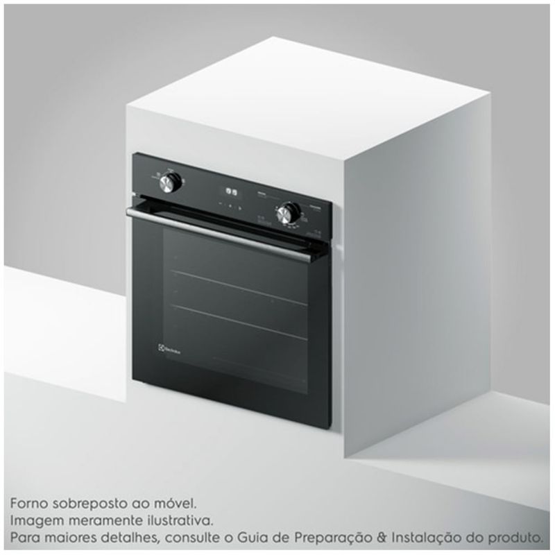 Com Acendimento Automático, Timer, Grill, Painel Full Touch e Acabamento Esmaltado Destaques Painel Full TouchPainel touch em vidro e LED branco que além de trazer sofisticação ao produto, é fácil de usar e proporciona maior interatividade e precisão de temperatura e tempo. PerfectCook360Tecnologia que combina um forno com Cavidade Selada e Convecção e permite assar até 30%* mais rápido e tudo por igual.*Resultados obtidos em testes internos. ConvecçãoAssa tudo por igual através de um ventilador interno que circula o ar quente de forma uniforme e garante uma temperatura homogênea em todos os cantos e alturas do forno. Cavidade SeladaPermite um melhor isolamento térmico no interior da cavidade por meio de uma estrutura com cantos arredondados que retém toda a temperatura dentro forno. Função Gratinar e DourarFinalize suas receitas com essa função ao gratinar e dourar a superfície dos alimentos e obter melhores resultados de textura e crocância. Diferentes Modos de AssarCinco opções de Modos de Assar para um melhor resultado dependendo do tipo do alimento e preparo desejado. Função Manter AquecidoMuito mais praticidade para seu dia a dia para reaquecer ou manter seu prato aquecido após o preparo. Porta e Vidro RemovíveisRemova a porta e o vidro interno com facilidade para uma melhor limpeza do seu forno. Esmaltação FastcleanInterior do forno com esmaltação vitrificada que impede a penetração de sujeiras, facilitando a remoção de gordura e resíduos de comida. Função Trava PainelGarante que o produto não seja acionado ou alterado indevidamente por crianças, por exemplo. CaracterísticasTipo: Gás de embutirTipo de Acendimento: AutomáticoCapacidade: 80 litrosGrillTimer sonoroSistema de ConvecçãoSeletor de Temperatura Temperatura Máxima: 280°CPainel: Mecânico Full TouchPorta e Vidro RemovívelAbertura da Porta: FrontalPrateleiras: 01Bandejas: 02Lâmpada Inclusa: SimVidro na Porta Especificações TécnicasModelo: OE8GHMaterial: EsmaltadoPotência: 1700 WCor: PretoVoltagem: 220VEAN: 7909569359457Garantia: 12 meses Dimensões e PesoDimensões do produto sem embalagem (AxLxP): 596x596x613 mmDimensões do produto com embalagem (AxLxP): 667x644x670 mmDimensões do nicho (AxLxP): 610x600x600 mmPeso do produto sem embalagem: 24,3 KgPeso do produto com embalagem: 25,5 Kg Instalação do ProdutoInstalação Flush (Alinhado com o móvel) e Instalação Sobreposta (Borda para fora) Itens Inclusos01 Forno02 Prateleiras01 Lampada