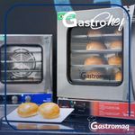 Forno Convector Gastrochef Analógico Fc35a Gastromaq Forno Convecção 35x35 Inox 220vForno Convector Gastrochef Analógico FC35A Gastromaq. Ideal para lojas de conveniência, lanchonetes, cafés, bistrôs e . Indicado para assar ou finalizar alimentos servidos a todo o momento como pães de queijo, cookies, merengues, folhados, pastéis, pizzas, croissant, biscoitos e outros doces e salgados de tamanho pequeno ou médio. Controlador analógico de tempo e temperatura. 4 assadeiras 35x35cm em alumínio perfurado. Distância de 75 mm entre assadeiras. Isolamento térmico em lã de rocha. Estrutura em aço inox 430. Alarme sonoro. AMPERAGEM: 11,8A. CAPACIDADE: 4 esteiras. TEMPERATURA: ajustável até 250°C. CONSUMO MONOFÁSICO: 2,0kW/h. MOTOR: 1/30cv. POTÊNCIA: 2.600W. VOLUME: 66 litros. PESO: 25kg. DIMENSÕES(CxAxL) 48,5x54,5x68,5cm. Equipamento certificado pelo OCP 0070 conforme Portaria INMETRO - 267/2021. Forno Convector Gastrochef Analógico FC35A Gastromaq é na Atau.Apresentação do Produto -Marca - GastromaqModelo - FC35 - AnalógicoCapacidade - 66 LitrosFrente - 48,5cmAltura - 54,5cmProfundidade - 68,5cmPeso - 25kgConsumo - 2,0kW/h