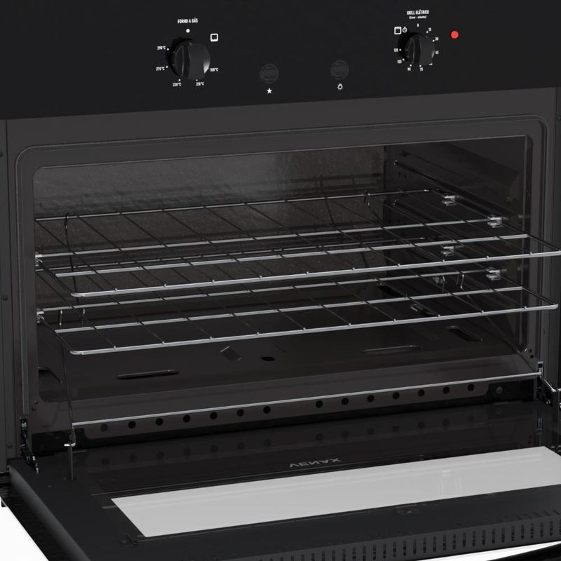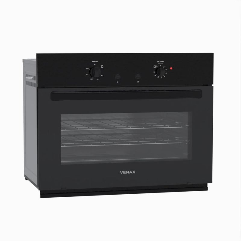 CaracterísticasTipo: Forno de embutirMarca: VenaxAcendimento: AutomáticoVálvula de segurança: SimLuz no forno: Sim (lâmpada não acompanha o produto)Prateleira do forno: 2 DeslizantesRevestimento forno: Esmalte limpa fácilControle de temperatura: 5 PosiçõesTemperatura: 180°C até 290°CTimer gás: NãoFunção grill: SimTimer grill: SimEspeto giratório: NãoBandeja coletora de resíduos: SimPorta do forno: Vidro PanorâmicoVidro duplo na porta: SimPorta removível: SimPuxador da porta: Aço pintadoBotões: RemovíveisEntrada de gás: Dupla (Reversível)Medidas do produto: Altura 61cm - Largura 78cm - Profundidade 61cmEspecificações TécnicasAlimentação: Gás GLP (A conversão para Gás Natural não é coberta pela garantia)Tensão: 127V ou 220V (não é bivolt, selecione no momento da compra)Frequência: 60HzPotência queimador: 2,30kWPotência grill: 1250WDimensões internas do forno(LxPxA): 648x470x290(mm)Volume do forno: 88,3LClassificação energética: "A"Etiquetas: ENCE e CONPETGarantia: 1 AnoL-largura / P-profundidade / A-altura