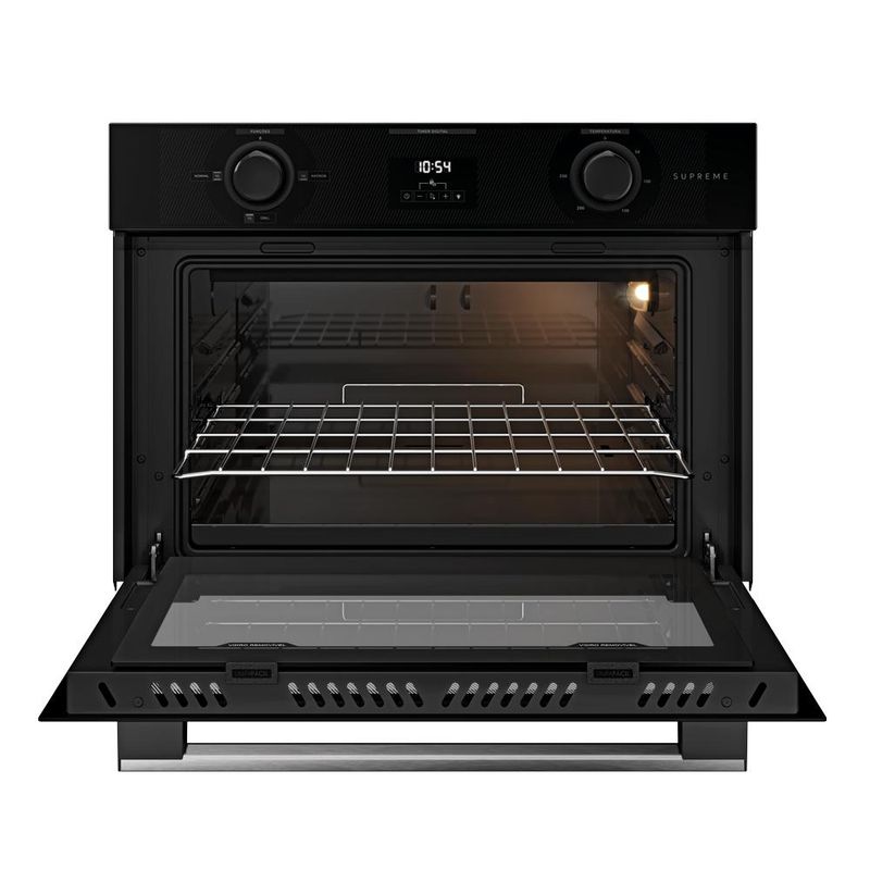 Combinando design sofisticado e tecnologia inteligente, ele se adapta perfeitamente ao seu ritmo de vida, seja para o preparo diário ou momentos especiais.O elegante puxador em alumínio escovado não apenas completa a estética moderna do seu ambiente, mas também oferece durabilidade para o uso constante. Cada detalhe foi pensado para que beleza e funcionalidade caminhem juntas no seu dia a dia.Imagine programar com precisão o tempo de cozimento através do intuitivo Timer Touch e receber um aviso sonoro quando seu prato estiver no ponto perfeito. Essa praticidade libera seu tempo para outras atividades, enquanto o forno trabalha para você.Com três modos de preparo versáteis, o forno se adapta a qualquer receita - desde um bolo delicado até aquele assado de domingo que reúne a família.A capacidade de 52 litros acomoda desde pequenas porções até pratos maiores, tornando-o perfeito tanto para o dia a dia quanto para receber amigos.O vidro duplo Low-E e o eficiente isolamento térmico não são apenas características técnicas - eles garantem que o calor permaneça dentro do forno, resultando em cozimento uniforme e economia real na conta de energia.Acompanhe o ponto ideal das suas criações através da iluminação interna, sem precisar abrir a porta e perder temperatura.A praticidade continua após o preparo: o acabamento limpa fácil e o vidro interno removível eliminam aquela parte trabalhosa da limpeza, aproveitando devolvendo seu tempo para o que realmente importa.Forno de Embutir Elétrico Dako. Tecnologia que simplifica sua vida e desperta o chef que existe em você.Versões 127V e 220V. Principais Benefícios:- Design moderno com puxador em alumínio escovado durável - Timer Touch com aviso sonoro, que garante precisão e praticidade no preparo - Três modos de preparo, adaptando-se a diversos tipos de receitas - Capacidade de 52L, ideal para porções pequenas e grandes - Vidro duplo Low-E e isolamento térmico para cozimento uniforme e economia de energia - Iluminação interna, permitindo acompanhar o preparo sem abrir o forno - Limpeza facilitada com acabamento limpa fácil e vidro interno removível Ficha técnica:Potência: 1750WCor: PretoLinha: SupremeGarantia: 12 MesesConvecção: NãoDimensões do Nicho (largura x altura x profundidade): 58,9 x 44,5 x 57 cmGrill: SimFuncionamento: ElétricoCapacidade do Forno: 52 LitrosAcabamento do Forno: Limpe FácilLuz no Forno: SimVidro do Forno: Vidro DuploGrades do Forno: 1 Grade deslizanteTimer: DigitalFabricação Nacional:Padrão de Tomada: 20A (127 V) / 10A (220 V)EAN: 7897103095974 (127 V) / 7897103095998 (220 V)Serviço de Instalação: Não realizamos. Consulte nosso SAC para indicações de assistência técnica credenciada na sua região.Ajuste de Temperatura: SimIsolamento Térmico: SimFunção Air Fryer: Não