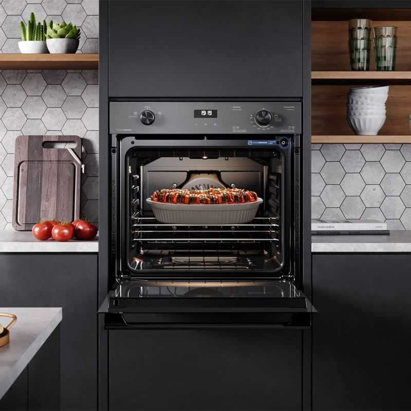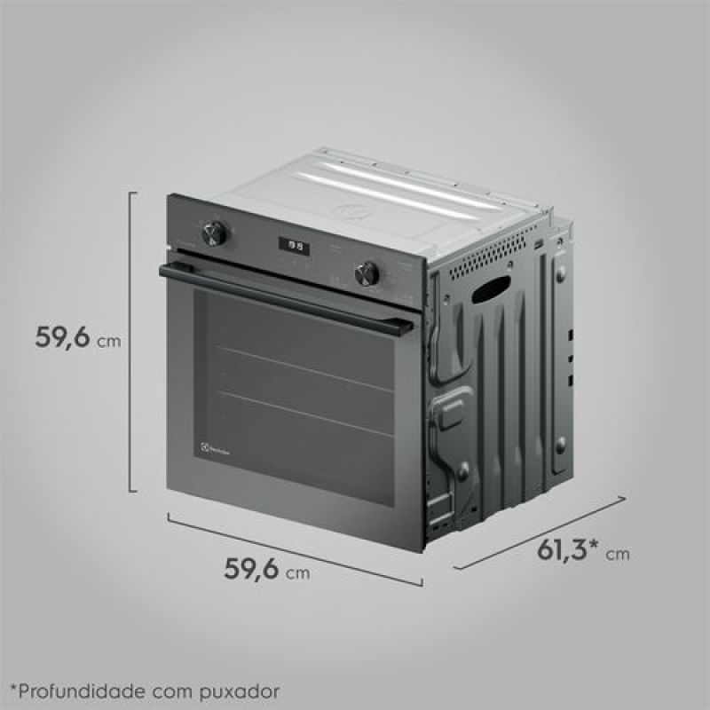 Prepare diversos pratos deliciosos com o novo Forno de Embutir a Gás Electrolux 80L Experience com FoodSensor (OE8GF). Este forno conta com o FoodSensor, prático termômetro que identifica a temperatura interna das carnes e permite assar de forma precisa o seu ponto preferido, seja mal passado, ao ponto ou bem passado. Ao atingir o ponto desejado, o forno emitirá um aviso sonoro, oferecendo praticidade, conveniência e autonomia para preparar suas carnes do jeito que você quiser. Além disso, possui a tecnologia PerfectCook360 que combina um forno com Cavidade Selada e Convecção e permite assar até 30%* mais rápido e tudo por igual. A Cavidade Selada permite um melhor isolamento térmico no interior da cavidade por meio de uma estrutura com cantos arredondados que retém toda a temperatura dentro forno. Já a Convecção, assa tudo por igual através de um ventilador interno que circula o ar quente de forma uniforme e garante uma temperatura homogênea em todos os cantos e alturas do forno. Esse forno também conta com Timer Digital que programa o tempo de cocção desejado e ao término do preparo, emite um aviso sonoro. Além da Função Gratinar e Dourar que te permite atingir melhores resultados de textura e crocância em suas receitas. *Resultados obtidos em testes internos. Tudo pensado para você. Para uma experiencia Electrolux completa durante a compra de seu novo produto, sugerimos que leia cuidadosamente as especificações, guias e manuais do produto para a instalação correta. Caso haja uma dúvida específica, por favor, entre em contato conosco por meio dos Canais de Atendimento oficiais.