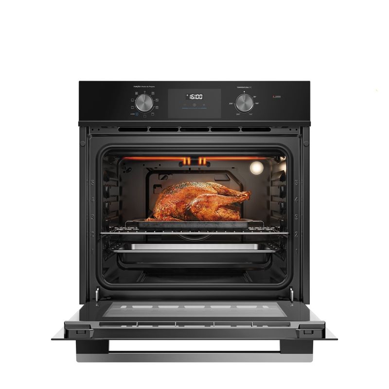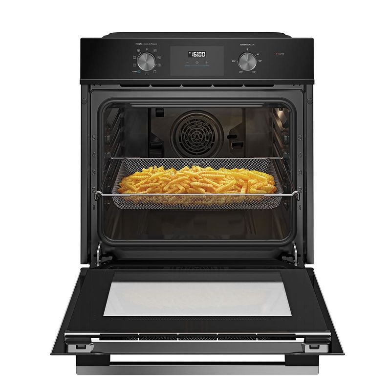 Forno de Embutir Midea 80L Digital + Airfryer + Convecção + Grill + 8 Funções O Forno de Embutir Elétrico 80L Midea Digital redefine o conceito de performance e design na cozinha moderna. Com uma capacidade generosa de 80 litros, ele é perfeito para quem busca versatilidade, permitindo assar pratos grandes ou várias receitas simultaneamente com seus 5 níveis de altura. Seu acabamento em vidro preto e painel digital conferem uma estética sofisticada e funcional ao ambiente. O grande diferencial tecnológico é a Função Airfryer, que utiliza a circulação intensa de ar quente para entregar alimentos crocantes e saborosos sem a necessidade de óleo. Aliado ao Sistema de Convecção, o calor é distribuído de forma uniforme, garantindo assados impecáveis e mais rápidos. Com 8 funções de preparo — incluindo Grill, Duplo Grill e Cozimento Lento — você tem total controle sobre cada receita. A segurança e a praticidade também são prioridades: o forno conta com timer digital com desligamento automático, trava de segurança e iluminação interna para monitorar o preparo sem abrir a porta. O kit completo de acessórios, que inclui cesto para Airfryer e bandeja, oferece toda a flexibilidade necessária para elevar o nível da sua culinária diária. Função Airfryer Integrada para uma alimentação mais saudável e crocante. Capacidade de 80 Litros ideal para grandes famílias e pratos volumosos. 8 Funções de Preparo, oferecendo desde o degelo até o duplo grill potente. Sistema de Convecção que distribui o calor uniformemente com auxílio de ventilador. Que tal aproveitar e completar sua cozinha com um belo refrigerador para lhe ajudar em todos os momentos? Aproveite!