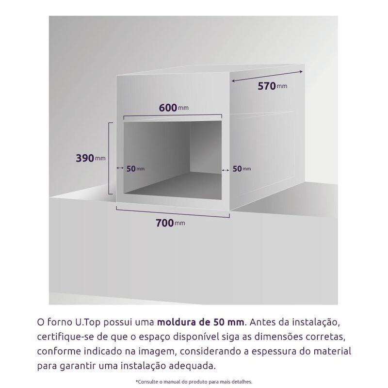 Chegou o Forno de Embutir Atlas U TOP, confiabilidade e durabilidade e estilo para sua cozinha! O Forno U Top foi pensado para descomplicar o seu dia a dia. Com capacidade de 44L, possui timer com desligamento automático, a praticidade que você precisa para deixar suas receitas no ponto ideal. Seu vidro duplo removível, garante uma limpeza completa e o forno ainda é capaz de economizar energia, devido ao seu isolamento térmico aprimorado. Também possui multifunções para bolos, massas, carnes e grill, além de luz automática ativada quando é ligado. Ficha técnica: Cor: PretoLinha: U TopDimensões do Produto (largura x altura x profundidade): 58 x 36,1 x 52,7 cmDimensões Internas do Forno (largura x altura x profundidade): 39 x 27 x 42 cmDimensões do Nicho (largura x altura x profundidade): 58 x 39 x 57 cmGarantia: 12 MesesInstalação: de EmbutirCapacidade do Forno: 44 LitrosFuncionamento: ElétricoPotência: 1.750 WattsGrill: SimIsolamento Térmico: SimAcabamento do Forno: Limpa FácilLuz no Forno: SimGrades do Forno: 1 Grade com 3 níveis de alturaFabricação: NacionalEAN: 7897180509255 (127V)
