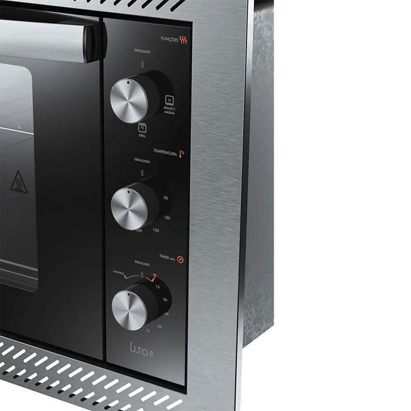 Forno De Embutir Elétrico U Top 44 Litros Com Grill Atlas Preto 220VForno de Embutir Eletrico U Top 44 Litros com Grill e Timer AtlasCaracteristicas do Produto:Capacidade de 44LPotencia de Com multifuncoes para bolos, massas, carnes, grillManipulos metalicos, muito estilosos e bonitosControle automatico de temperatura em varias potenciasCom isolamento termico (la de basalto), que deixa o produto pelo menos 20 porcento mais economicoTimer com desligamento automatico, praticidade para nunca mais errar o ponto ideal das suas receitasMoldura em aco inox escovadoVidro duplo removivel com trava clicou, soltou - Uma limpeza completa muito mais praticaCom lampada interna de acendimento automaticoForno Limpa Facil - Muito facil limpar o fornoGrill DouradorAcabamento interno Limpa FacilIsolamento termico3 Niveis de altura da gradeConteudo da Embalagem: Forno de Embutir Eletrico U Top 44 Litros com Grill e Timer AtlasDimensoes do Produto:Altura: 36,1 cmLargura: 58 cmProfundidade: 52,7 cmPeso: 14,01 kgGarantia do Fabricante: 12 meses