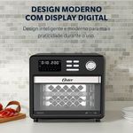 Muito mais praticidade para a sua rotina na cozinha! O Forno Fryer Multifunções Compact da Oster® entrega tudo para quem quer sempre mais. São 21 funções e pré-programações que vão levar mais praticidade para a sua cozinha e saúde para a sua rotina. 2 em 1 Forno e Fritadeira: Mais versatilidade e praticidade para seus momentos na cozinha. Com o novo Forno Fryer Multifunções Compact Oster®, é possível fritar sem óleo e assar por convecção. 10 Funções Manuais: Fritadeira, Grill, Desidratar, Descongela, Reaquecer, Forno, Grelhar, Turbo Convection, Torrar e Estufa. 11 Funções Pré-Programadas: Frango, Peixe, Costela, Camarão, Carne, Asas de Frango, Vegetais, Bacon, Batata Frita, Lasanha e Pizza. Função Turbo Convenção: Mais velocidade na hora de assar. A função convecção garante que a temperatura seja igual por toda a superfície do alimento, proporcionando um cozimento uniforme e de melhor qualidade. 1600W de Potência e Capacidade de 15L: Potência e capacidade na medida certa. Prepare todo tipo de receita na quantidade ideal para suas refeições. E Mais: Display digital e painel luminoso. Hack com 4 níveis. Controle de tempo e temperatura. Acabamento fosco. Acessórios: bandeja coletora de migalhas, assadeira e coletora de gordura, cesto de fritura e grelha e prateleira.