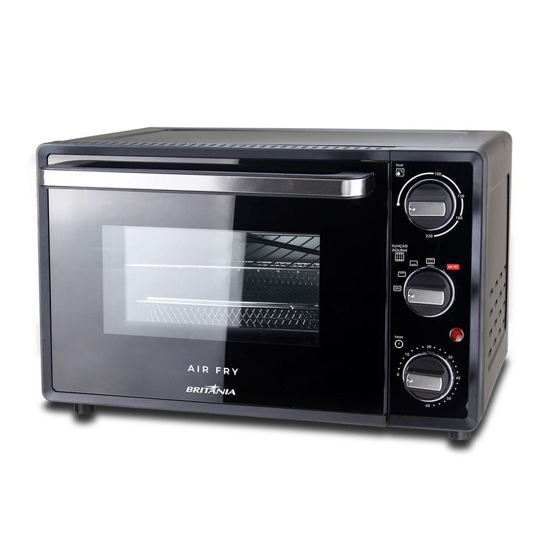 Forno Elétrico Air Fryer Britânia BFE25P vai revolucionar a maneira de preparar seus alimentos. Agora de forma mais saudável você vai conseguir cuidar da sua saúde sem precisar abrir mão do sabor. A Função Air Fryer frita alimentos sem óleo deixando-os saborosos e ideais para uma dieta equilibrada para cuidar da sua saúde. Acompanha 4 acessórios: Cesta para fritura, bandeja, pegador e grelha com 3 níveis de ajuste. As 4 resistências ajudam a distribuir melhor o calor e assar o alimento por inteiro deixando a textura do alimento mais uniforme. e o seletor de temperatura aliado ao timer de até 60 minutos com desligamento automático permite que prepare refeições programando a melhor forma de deixar a comida saborosa sem usar óleo. A pintura esmaltada não gruda gordura nas paredes e é muito fácil de limpar. A iluminação interna deixa você acompanhar o preparo dos alimentos. Mais que cozinhar, com o BFE25P você cuida de quem mais ama! Pode ser usado como forno ou airfry Possui cesto e assadeira coletora de gordura Modos de aquecimento: forno normal, dourador, aquecimento, airfry Seletor de temperatura de 100 até 230 graus Possui 4 resistências superiores e 2 inferiores Iluminação interna e luz de funcionamento Grelha para assar Interior esmaltado 3 níveis de ajuste de altura da grelha