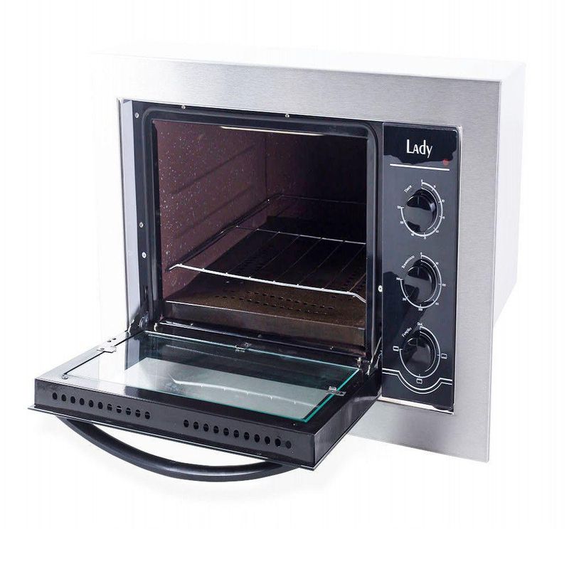 Forno Elétrico De Embutir Lady 45 Litros Safanelli Preto 220vForno Embutir Lady 45 Litros SafanelliBeleza e sofisticação na sua cozinha, garantindo muito mais praticidade no seu dia a dia. O Forno Elétrico de Embutir Lady 45L Safanelli possui acabamento externo em inox, acabamento interno auto limpante, vidro duplo com trava, isolamento térmico exclusiva manta de lã de rocha, botão funções que permite controle total das resistências, acompanha 1 grade interna com 3 níveis de ajuste e 2 grades de ventilação externas para embutir, porta com abertura vertical com auto trava, timer 120 min que permite programar o tempo do assado e o término do preparo. No término do tempo programado, o forno desliga automaticamente e emite um sinal sonoro. Beleza e sofisticação na sua cozinha, garantindo muito mais praticidade no seu dia a dia.Características:Marca: SafanelliModelo: LadyLitros: 45LPotência: 1750WAcabamento interno: AutolimpanteTimer: 120 minutosLuz interna: SimLuz piloto: SimGrade: Acompanha 1 grade interna ajustável em 3 níveisAntes de qualquer manutenção desligue o produto da tomada;Nunca faça limpeza com o plugue ligado na tomada;Não utilize pano úmido no vidro quando o forno estiver quente;Para limpeza do vidro utilize pano ou esponja macia.Não use produtos de limpeza abrasivos ou raspadores metálicos afiados para limpar o vidro da porta do forno, pois pode arranhar a superfície e resultar na quebra do vidro; Não utilizar produto de limpeza a vaporTermostato de 300 graus CIsolamento térmicoBotão funçõesPorta com abertura verticalAntes de qualquer manutenção desligue o produto da tomada;Nunca faça limpeza com o plugue ligado na tomada;Não utilize pano úmido no vidro quando o forno estiver quente;Para limpeza do vidro utilize pano ou esponja macia.Não use produtos de limpeza abrasivos ou raspadores metálicos afiados para limpar o vidro da porta do forno, pois pode arranhar a superfície e resultar na quebra do vidro. Não utilizar produto de limpeza a vaporDimensões internas:Altura: 26,5 cmLargura: 37 cmProfundidade: 46 cmDimensões externas:Altura: 35 cmLargura: 55 cmProfundidade: 51,5 cmDimensões externas com Moldura:Altura: 46,5 cmLargura: 66 cmProfundidade: 51,5 cmPeso do produto: 15 KgPeso com embalagem: 16,5 KgGarantia do Fornecedor: 12 meses. Cor: Preto Voltagem: 220V