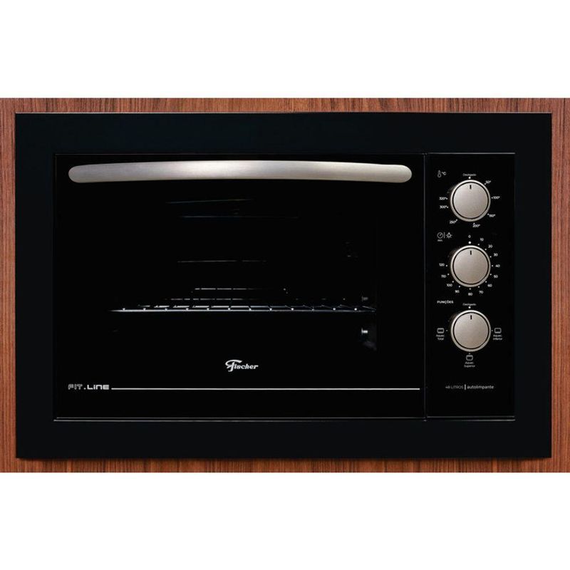 Forno Elétrico Fischer Fit Line Embutir 48L Preto 127VCom design moderno, o Forno Elétrico Fischer Fit Line de Embutir está disponível em três versões: frontal em aço carbono pintado branco, preto ou em inox escovado. Ele apresenta controle automático de temperatura, timer de até 2 horas com aviso sonoro, lâmpada interna, seletor de funções e isolamento térmico total, garantindo maior eficiência e segurança. A porta do forno possui vidro duplo, que impede a fuga de calor, economizando energia. O corpo interno é autolimpante, facilitando a manutenção. Além disso, inclui bandeja esmaltada para resíduos, grade cromada removível, e a potência total do forno é de 1775W.Especificações Técnicas:Marca: FischerTensão: 127VPotência Total do Produto: 1775WPotência da Resistência Superior: 750WPotência da Resistência Inferior: 1000WPotência da Lâmpada: 25WCódigo EAN 127V (Black): 789.65133 2197-7Frequência: 60HzConsumo Energético: 0,60 kWh (bolo inglês)Corrente: 127V: 13,8AControle: EletromecânicoCapacidade: 48 litrosTipo de Plugue: Padrão ABNT (3 pinos)Comprimento do Cabo de Alimentação: 1,0 mDimensões Externas do Produto (AxLxP): 42 x 66,5 x 55 cmDimensões Internas do Produto (AxLxP): 27,5 x 39,2 x 44,5 cmDimensões Externas da Embalagem (AxLxP): 45,7 x 69,7 x 56,2 cmDimensões do Nicho de Instalação (AxLxP): 39 x 60 x 57 cmPeso Líquido: 16,05 kgPeso Embalado: 16,95 kgCertificação: Produto Certificado pelo INMETRO (Portaria 148)Garantia: 1 ano