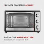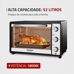 O forno elétrico Grand Family II FR-52 da Mondial tem muito espaço para você caprichar nas receitas da sua família. Com capacidade para 52 litros, ele é multifuncional: aquece, cozinha, tosta, assa, gratina e grelha os alimentos. Possui controle de temperatura, grelha com regulagem de altura, timer de 90 minutos com desligamento automático e alta potência de 1800W. Saiba mais sobre o FR-52 da Mondial: CAPACIDADE DE 52 LITROS: Alto desempenho e ótimo espaço! Ideal para o preparo de receitas para toda a família. MULTIFUNÇÕES: Ideal para aquecer, cozinhar, tostar, assar, gratinar e grelhar de maneira rápida e eficiente. POTÊNCIA DE 1800W: Alta potência que assegura mais agilidade e eficiência no preparo de receitas variadas. SELETOR DE RESISTÊNCIA: São 3 opções de aquecimento interno para distribuir melhor o calor. TIMER DE 90 MINUTOS: Mais liberdade e segurança para você fazer outras tarefas enquanto o forno trabalha. Com aviso sonoro, o aparelho desliga automaticamente ao término do preparo. MAIS PRATICIDADE: A regulagem de altura da grelha oferece versatilidade para um cozimento ideal. CONTROLE DE TEMPERATURA: De 100°C até 250°C: Ajuste a intensidade da temperatura de acordo com a receita que vai preparar. PUXADOR E BOTÕES EM AÇO INOX: Design moderno, com mais durabilidade e resistência. UM ANO DE GARANTIA MONDIAL: A Mondial é a escolha de milhões de consumidores. Mondial, a escolha inteligente!
