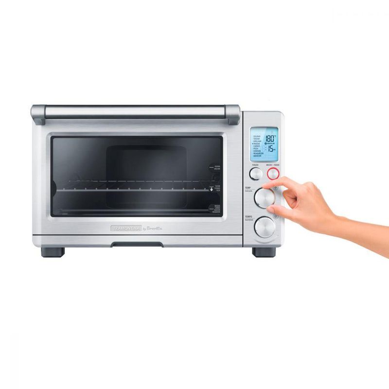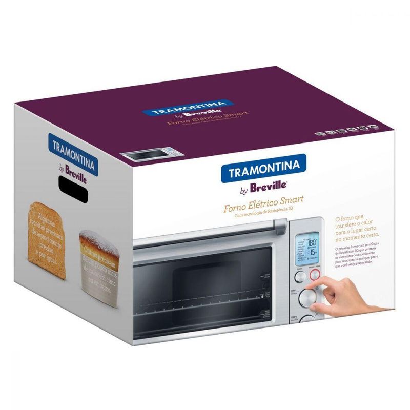 Forno Elétrico Smart Inox 22 Litros 110V TramontinaFaça diferentes tipos de preparos com muita facilidade com o Forno Elétrico Smart em Aço Inox 9 Funções 22 L 127 V da linha de Eletroportáteis Tramontina by Breville. Para tornar as suas receitas ainda melhores, ele conta com opção grelhar, que gera temperatura alta na parte superior, deixando os alimentos mais crocantes. A opção tostar conta com temperatura muito alta nas partes superior e inferior, possibilitando que os alimentos fiquem dourados e crocantes. Traz também a opção massas, que gera um aquecimento por convecção homogêneo, assando por compelto. Para tornar o manuseio mais ágil, a grade magnética com ejeção automática possibilita remover facilmente os itens quentes. Além disso, conta com porta de porta de parede dupla de vidro temperado. LCD com retroiluminação fácil de ler, trazendo informações de tempo e temperatura. Conta com 5 resistências de quartzo com tecnologia de resistência IQ. Seletor de funções: 9 funções pré-definidas de cozimento. Seletor de tempo com desligamento automático e alerta sonoro. Bandeja de migalhas destacável com alça que não esquenta. Acompanha: assadeira antiaderente para pizza 33 cm e assadeira retangular esmaltada. Com o Forno Elétrico da Tramontina ficará muito mais fácil realizar diversos preparos e receitas que você adora.Especificações Técnicas:Linha ou Coleção: BrevilleComnto: 47,5 CmLargura: 41 CmAltura: 28 CmMaterial Principal: Aço InoxCapacidade: 22 LitrosFrequência: 60 HzPotência: 2000 WVoltagem: 127 VPeso: 10 KgCertificação: INMETRO UL OCP 0029Grelhar temperaturas altas na parte superior: derrete e deixa crocante.Tostar temperaturas muito altas nas partes superior e inferior: doura e deixa crocante.Massas aquecimento por convecção homogêneo: assa por completo.Grade magnética com ejeção automática para remover facilmente itens quentes. Porta de parede dupla de vidro temperado.LCD com retroiluminação fácil de ler calcula o tempo e a temperatura corretos, iluminando-se em laranja durante o pré-aquecimento e o cozimento, e em azul quando o ciclo é concluído.5 resistências de quartzo com tecnologia de resistência IQ.Seletor de funções 9 funções pré-definidas de cozimento.Seletor de tempo com desligamento automático e alerta sonoro. Bandeja de migalhas destacável com alça que não esquenta.Acessórios inclusos: assadeira antiaderente para pizza 33 cm e assadeira retangular esmaltada.Tensão: 127VFrequência: 60 HzPotência: 2000WEste aparelho é recomendado apenas ao uso doméstico.Recomendações de Uso: Antes de usar, leia cuidadosamente todas as instruções do manual e guarde-o para consultas futuras. Antes de usar o aparelho pela ira vez, remova e descarte com todos os materiais de embalagem e etiquetas promocionais. Quando estiver em uso, posicione o aparelho a uma distância mínima de 20 cm de paredes, cortinas, tecidos e outros materiais sensíveis ao calor. Isso permite uma circulação adequada de ar e ajuda a prevenir a possibilidade de descoloração das paredes, cortinas e tecidos devido ao calor irradiado.Marca: TramontinaGarantia: 12 Meses contra s de Fabricação